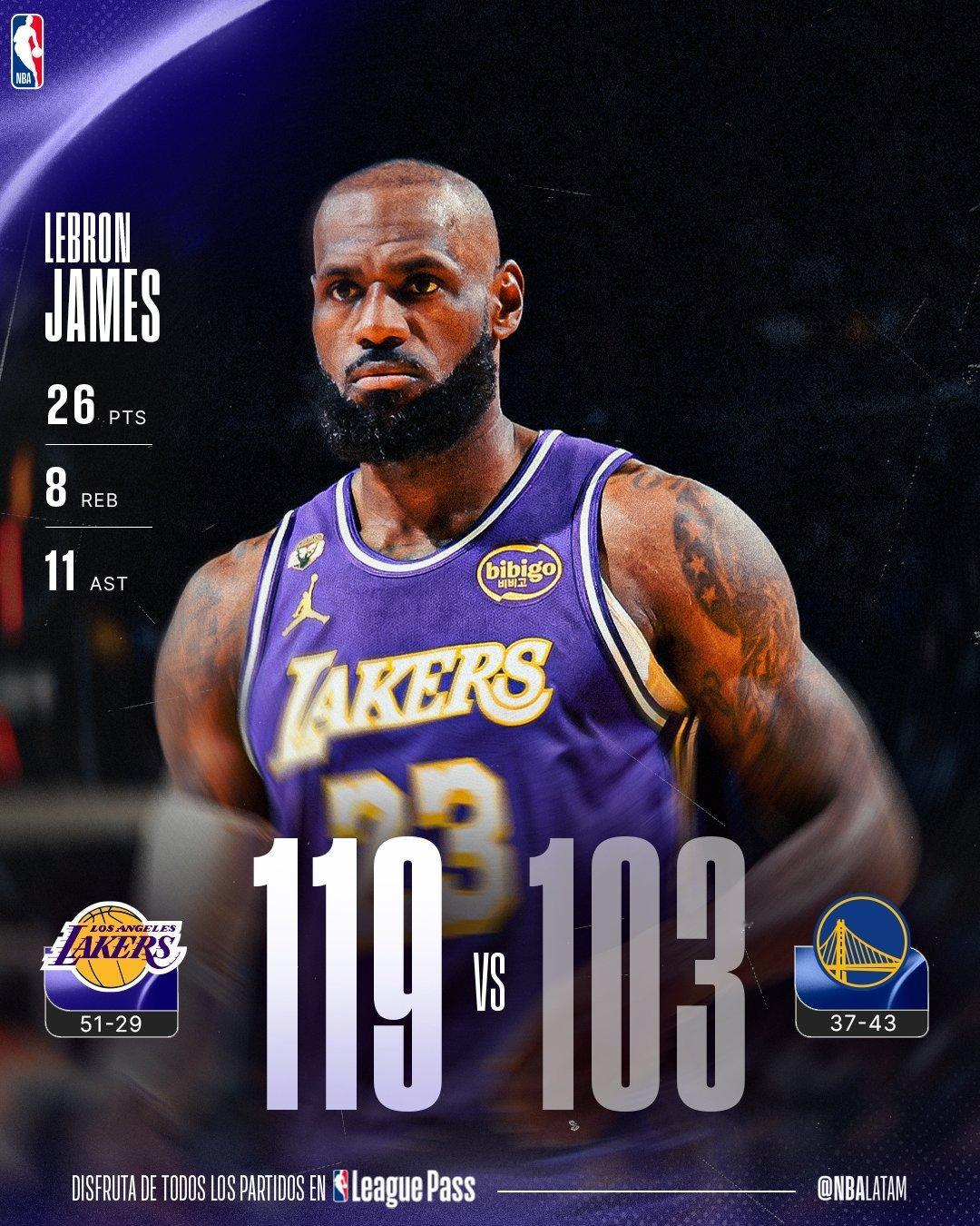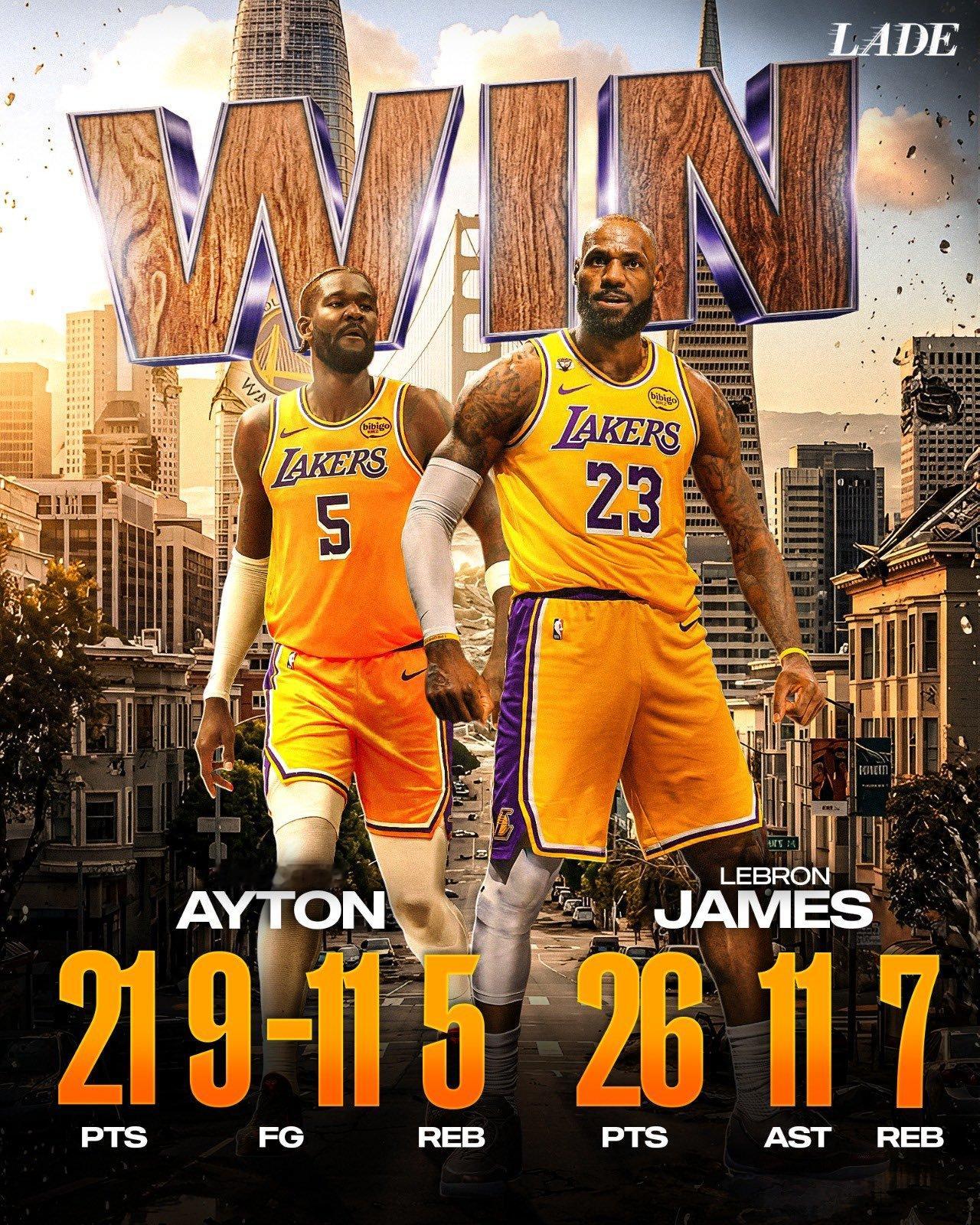 ——全场出战31分钟——投篮17中11,三分5中3,罚球2中1——拿下26分8篮板11助攻2抢断1盖帽——没有东契奇,没有里夫斯,没有斯马特——正负值+19,湖人119-103战胜勇士