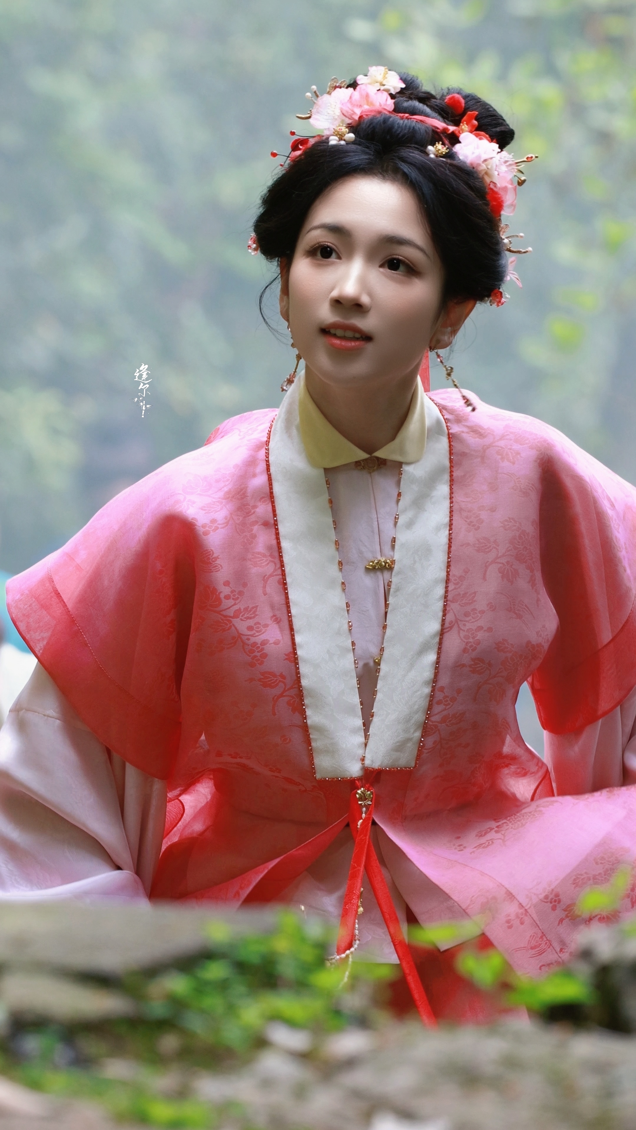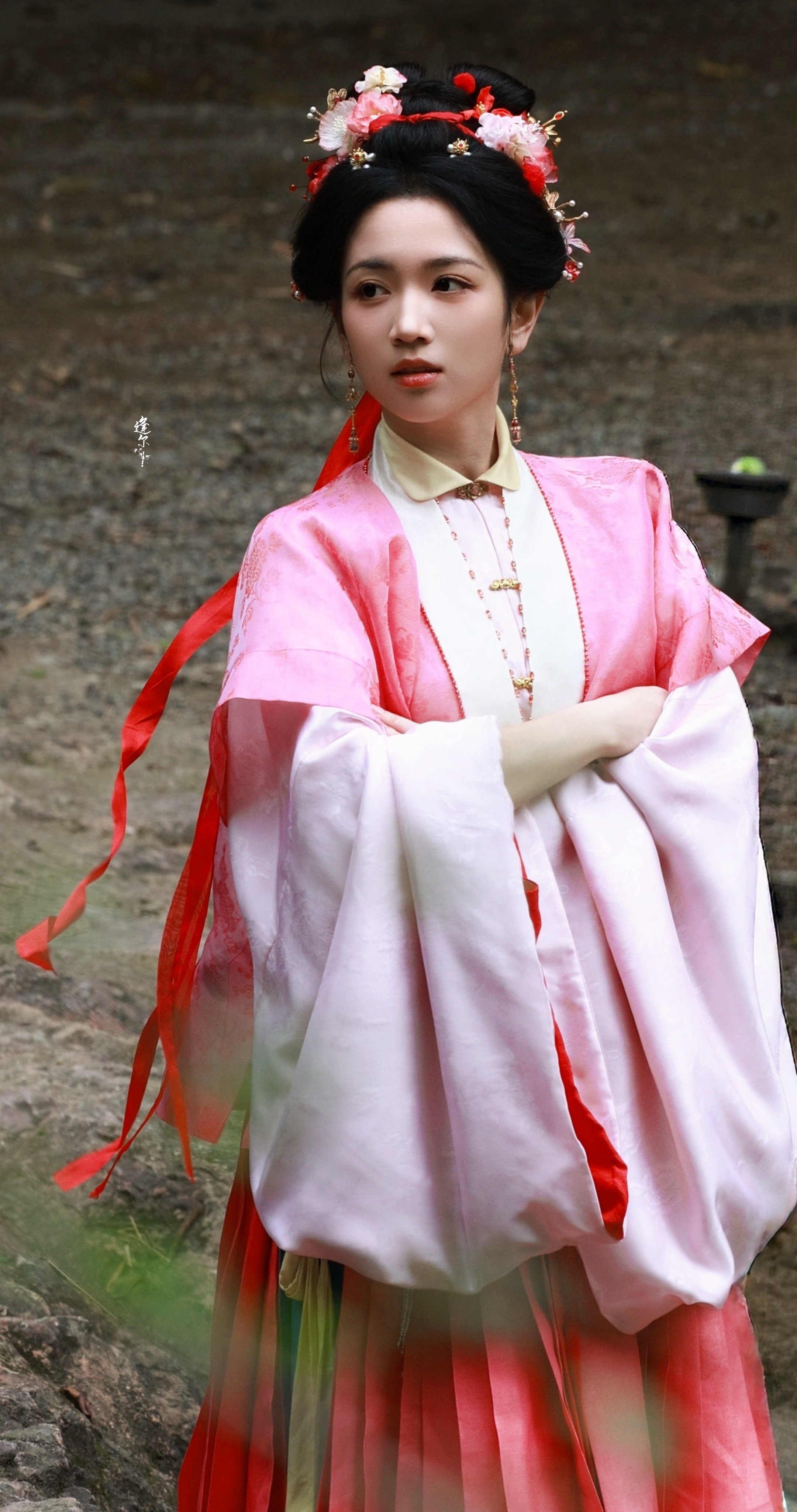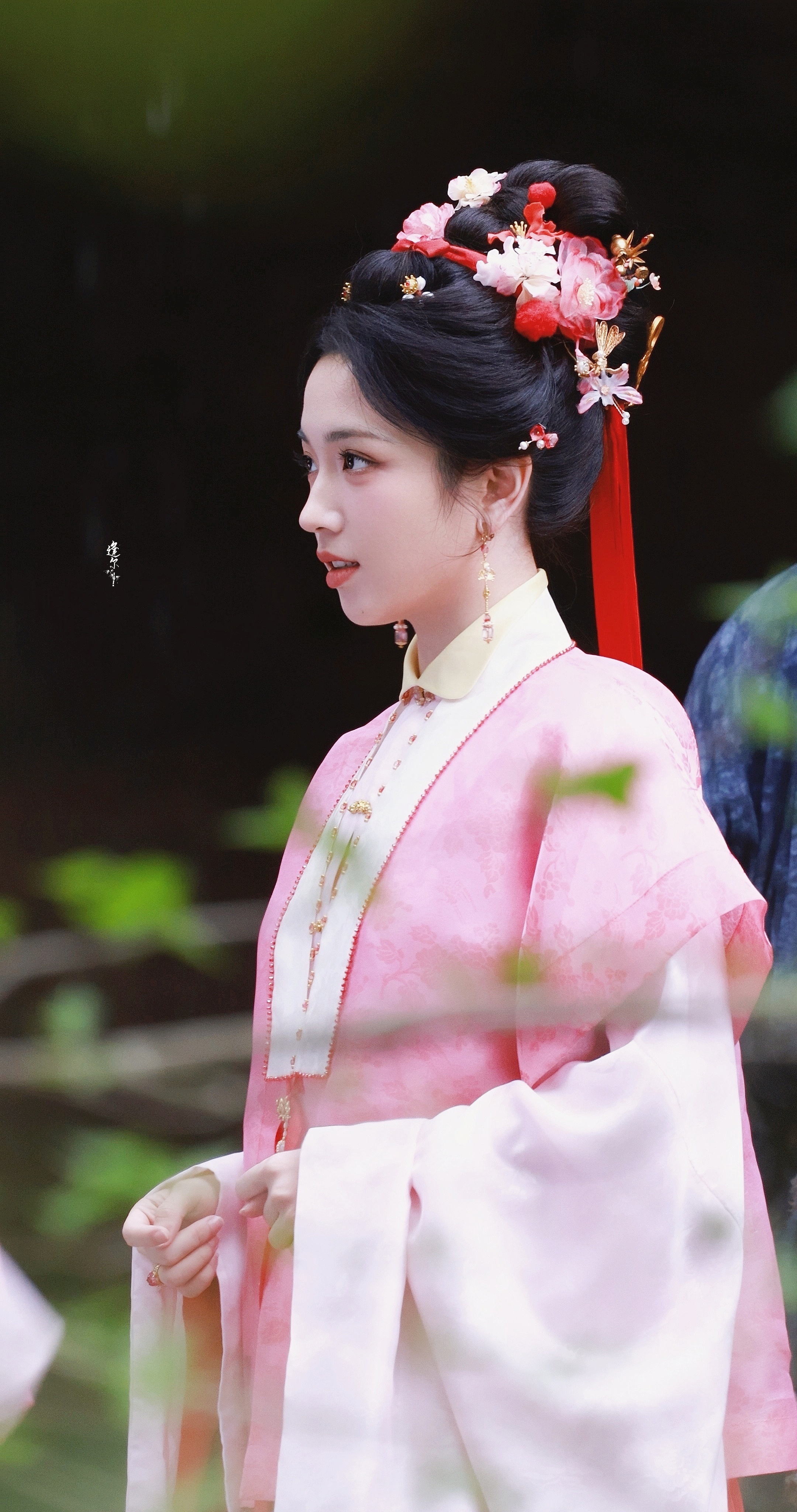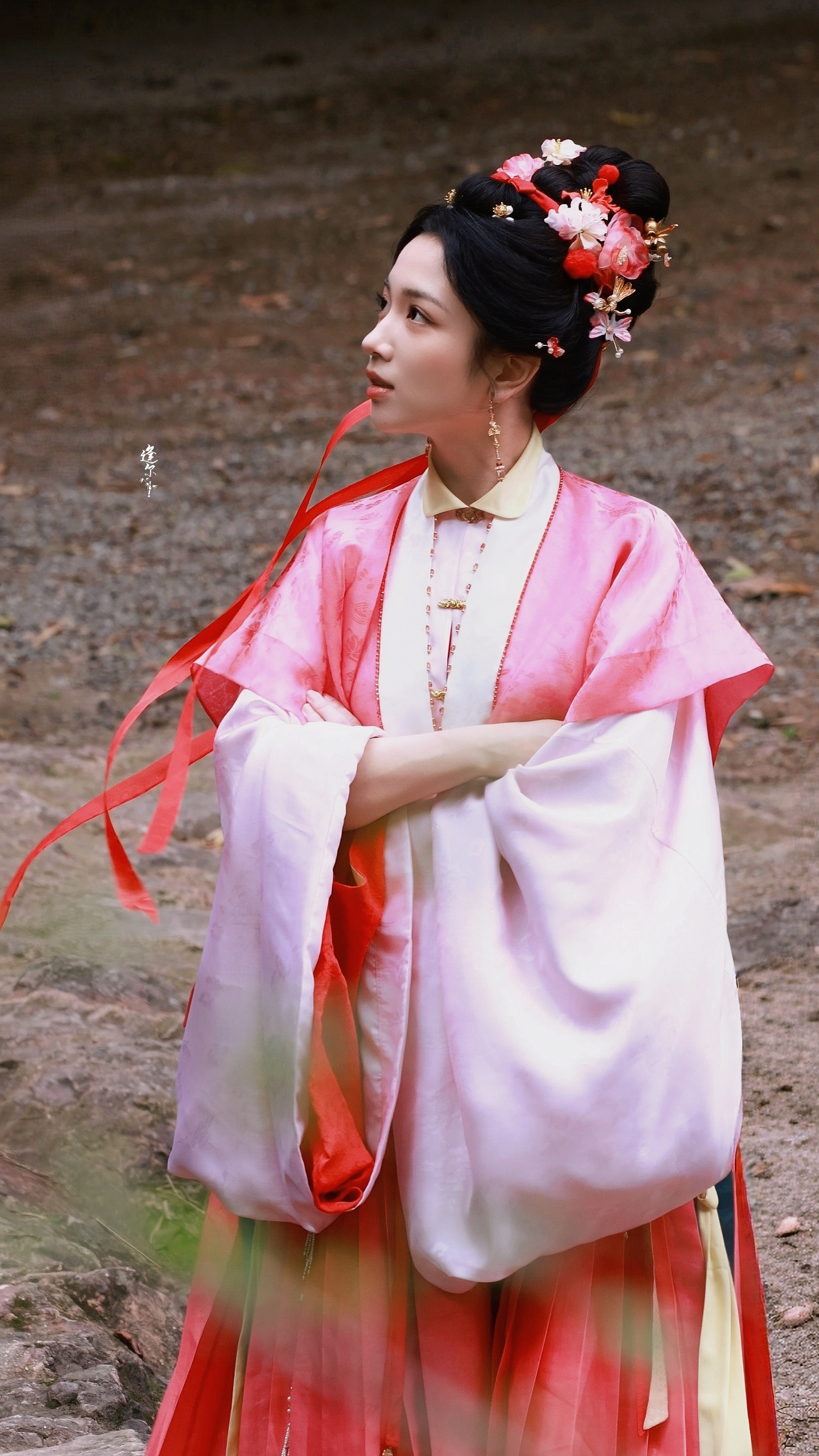 ☽ 盘发+粉衣(粉黄)+红发带