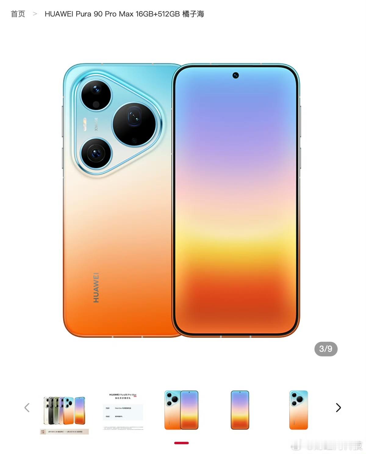 今天12:08 Pura90开启预订,订金200。已公布的两款机型拥有橘子海、霞
