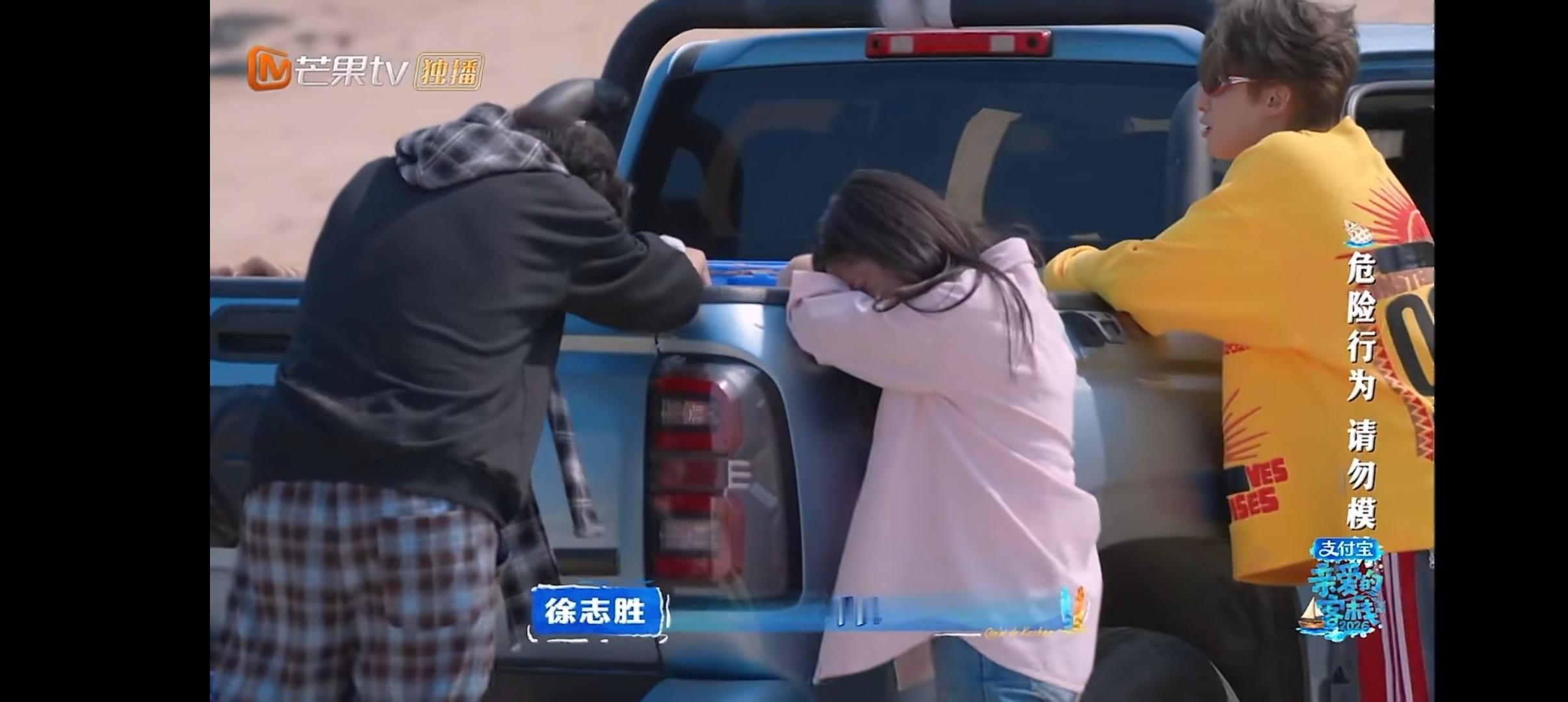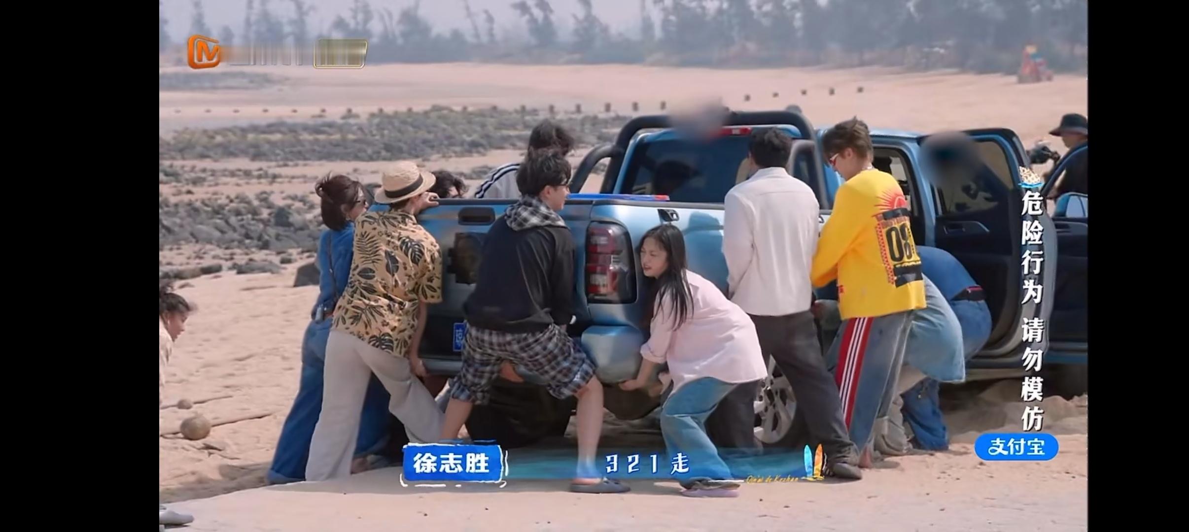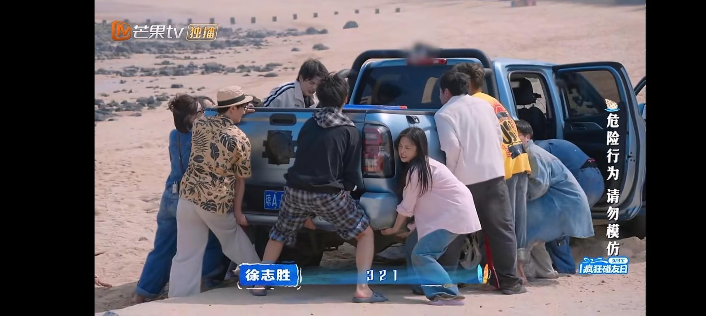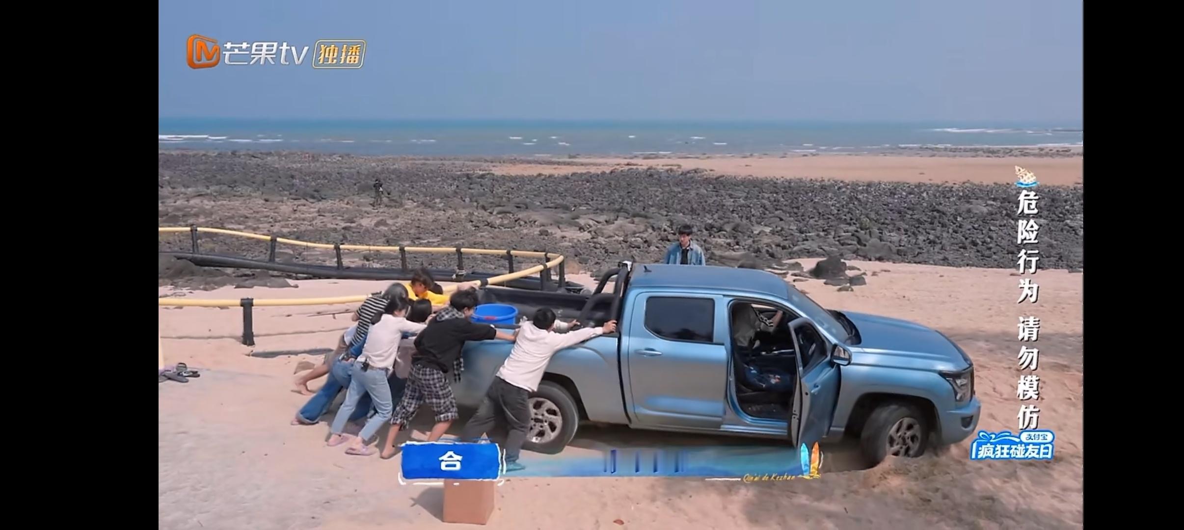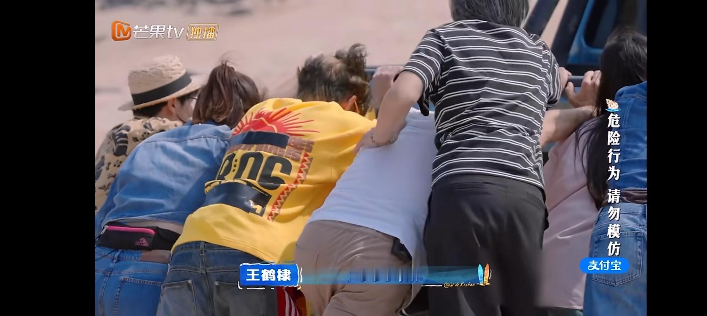 王鹤棣带客栈全员抬咖 群像的魅力,王鹤棣、沈月和大家一起抬皮卡车,“因为大家一直在干,没有人说放弃”“团魂燃了! 这就是团队协作”!