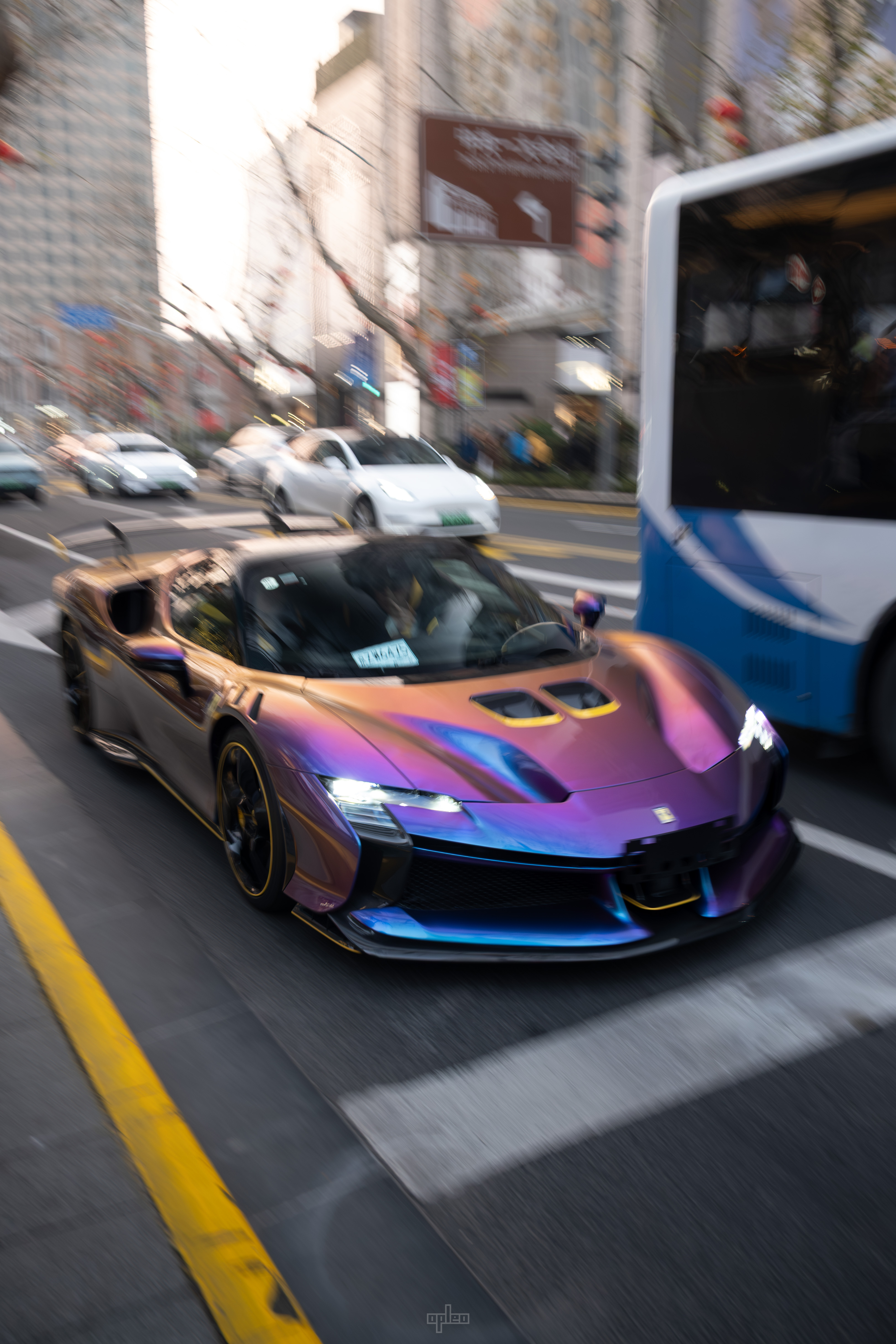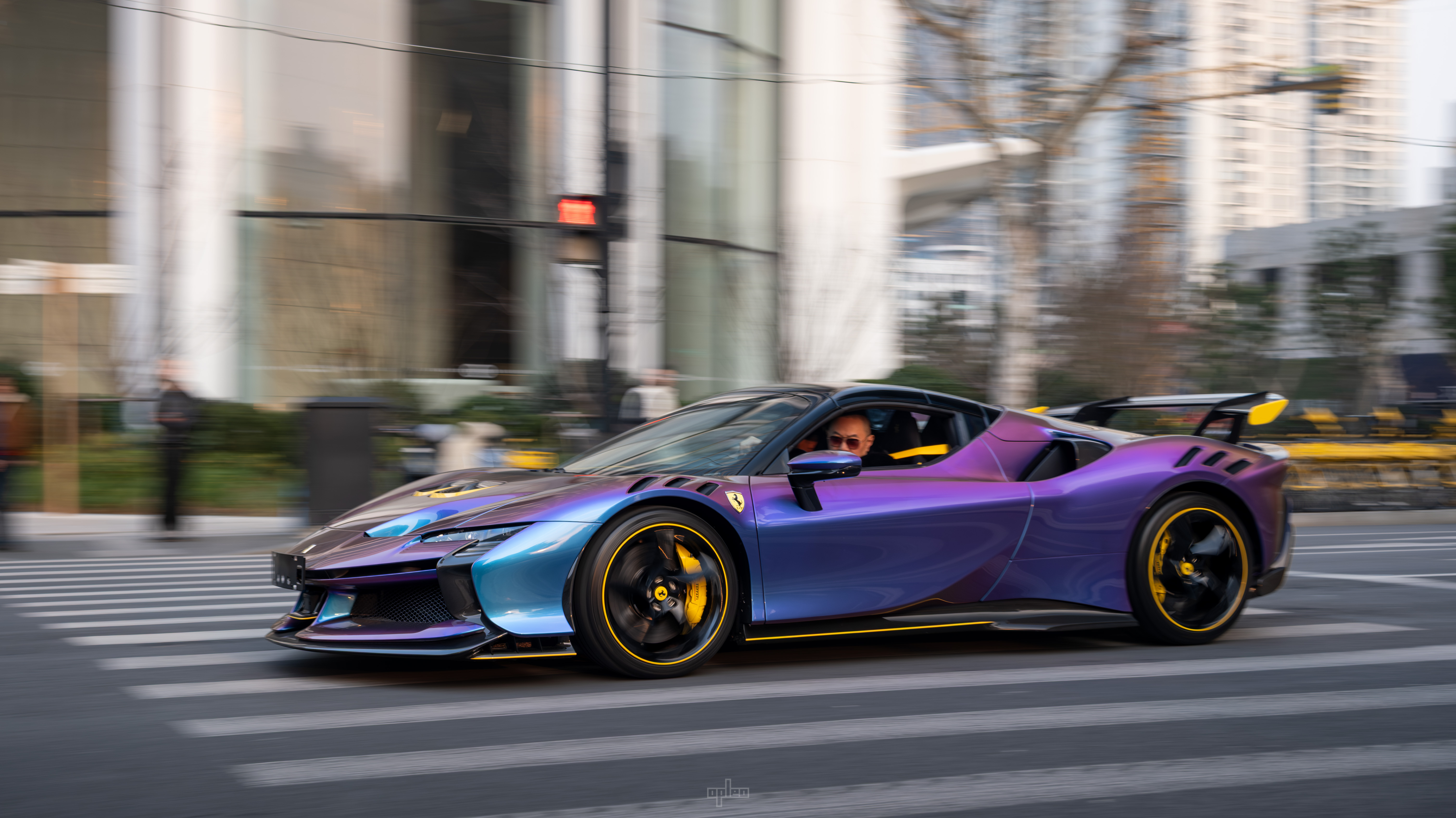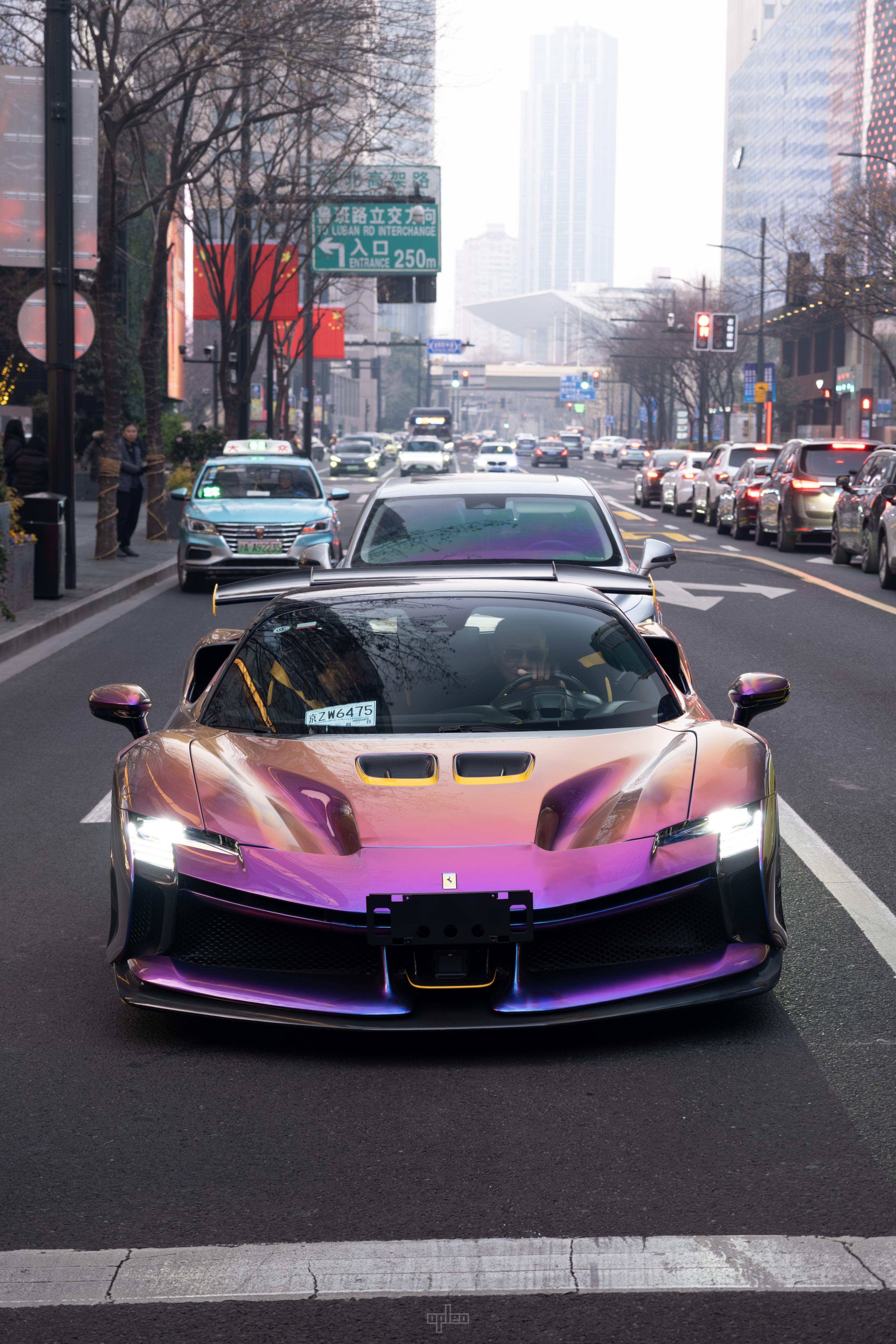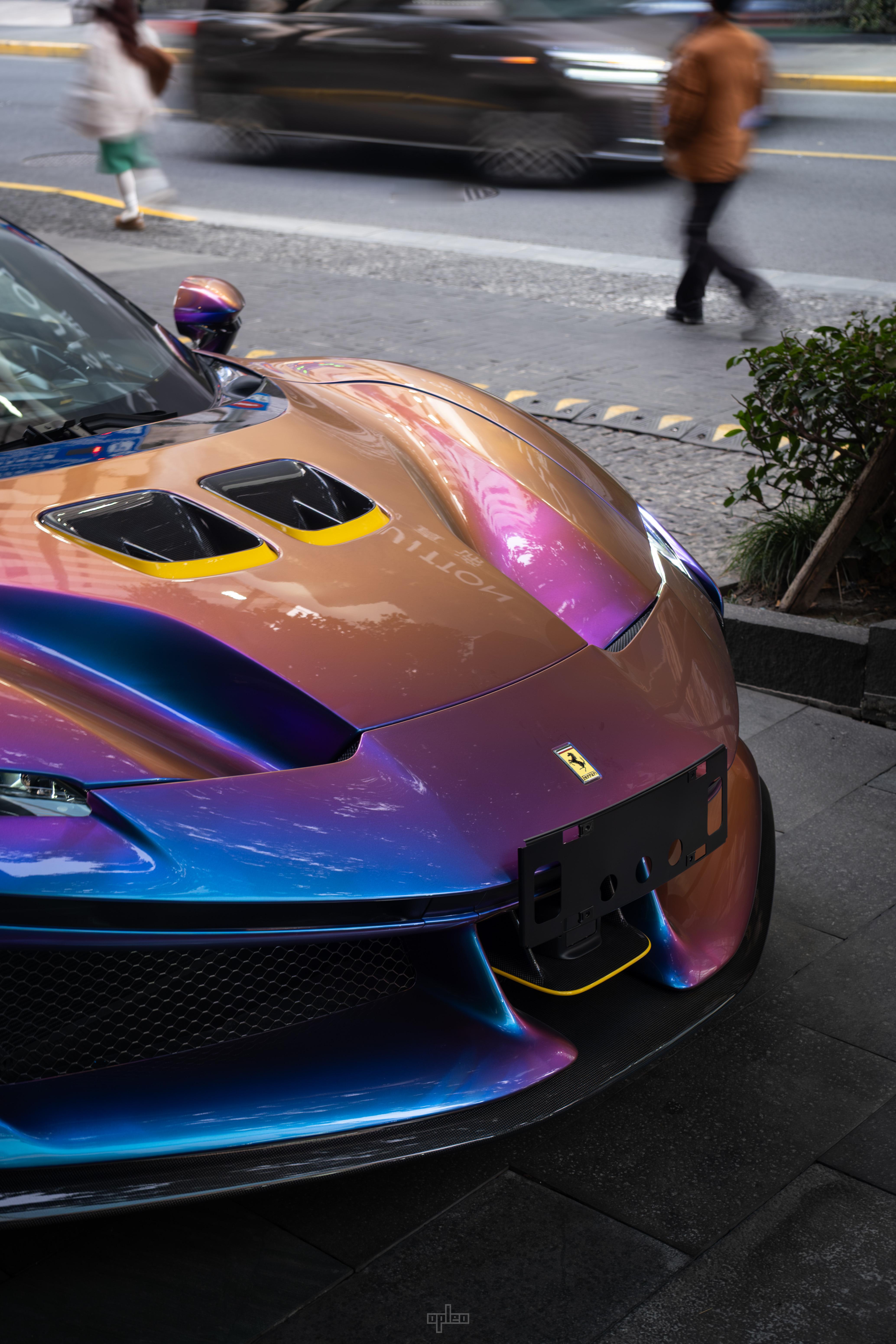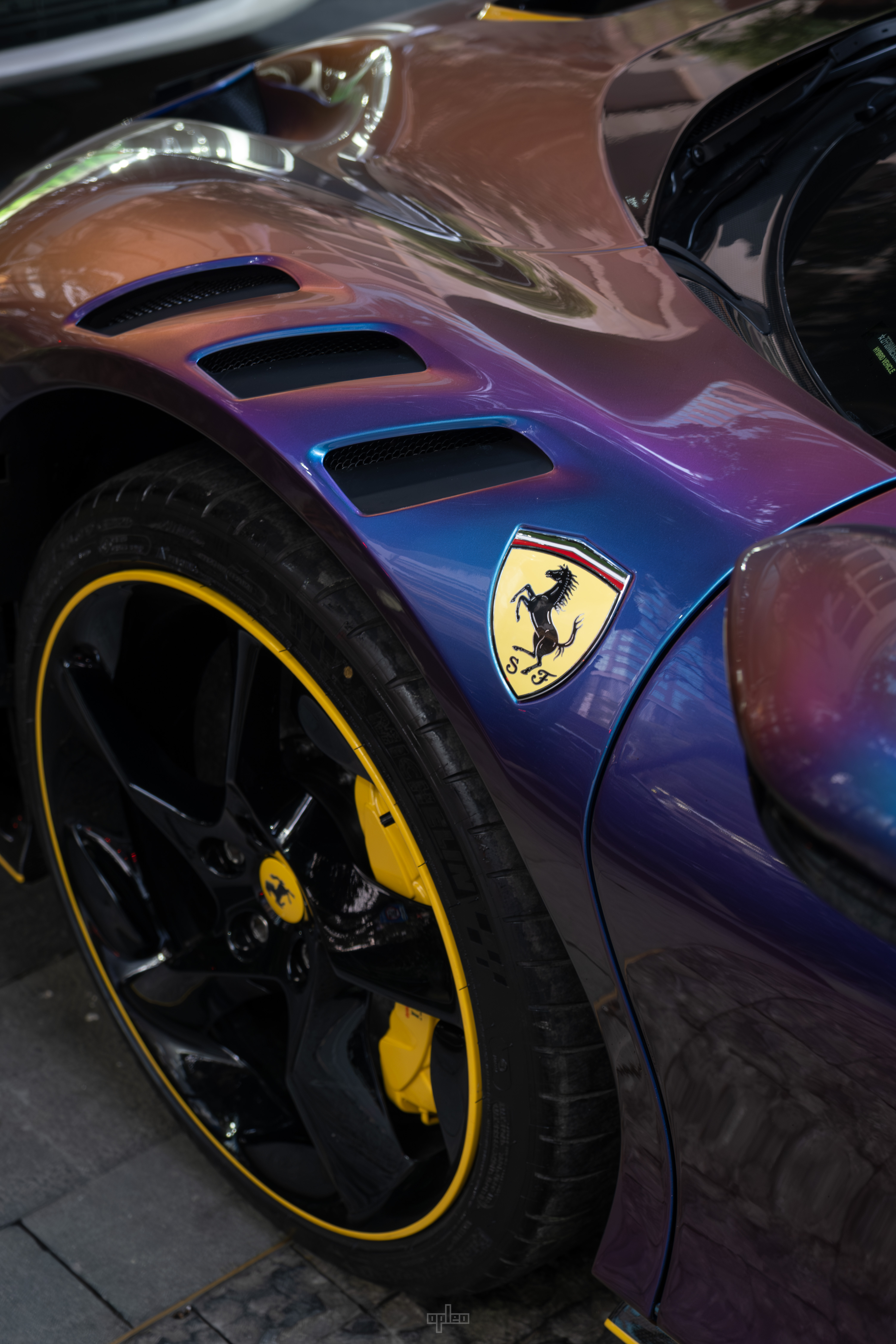 正在使用法拉利全新Azzurro Iridescente变色车漆的SF90xx