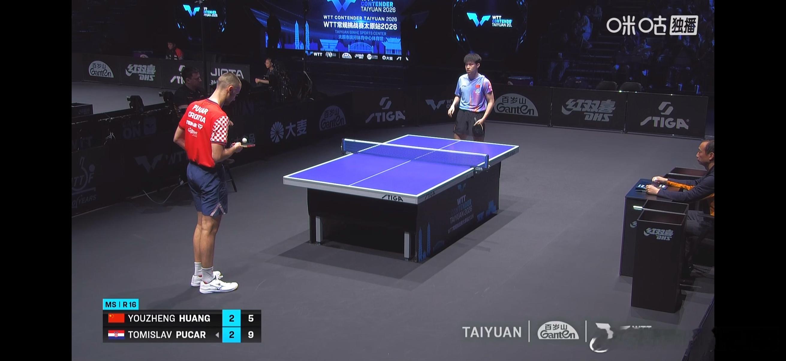 男单1/8决赛:🇨🇳黄友政2比3普卡🇭🇷(11-7,3-11,4-11,12-10,8-11)