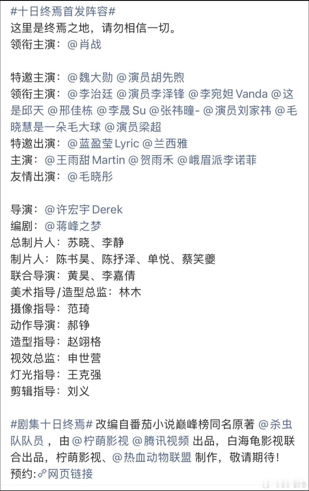 肖战十日终焉首发阵容要公布了!官微入驻超话,隐藏了官宣博文和视频,还没官宣已经登