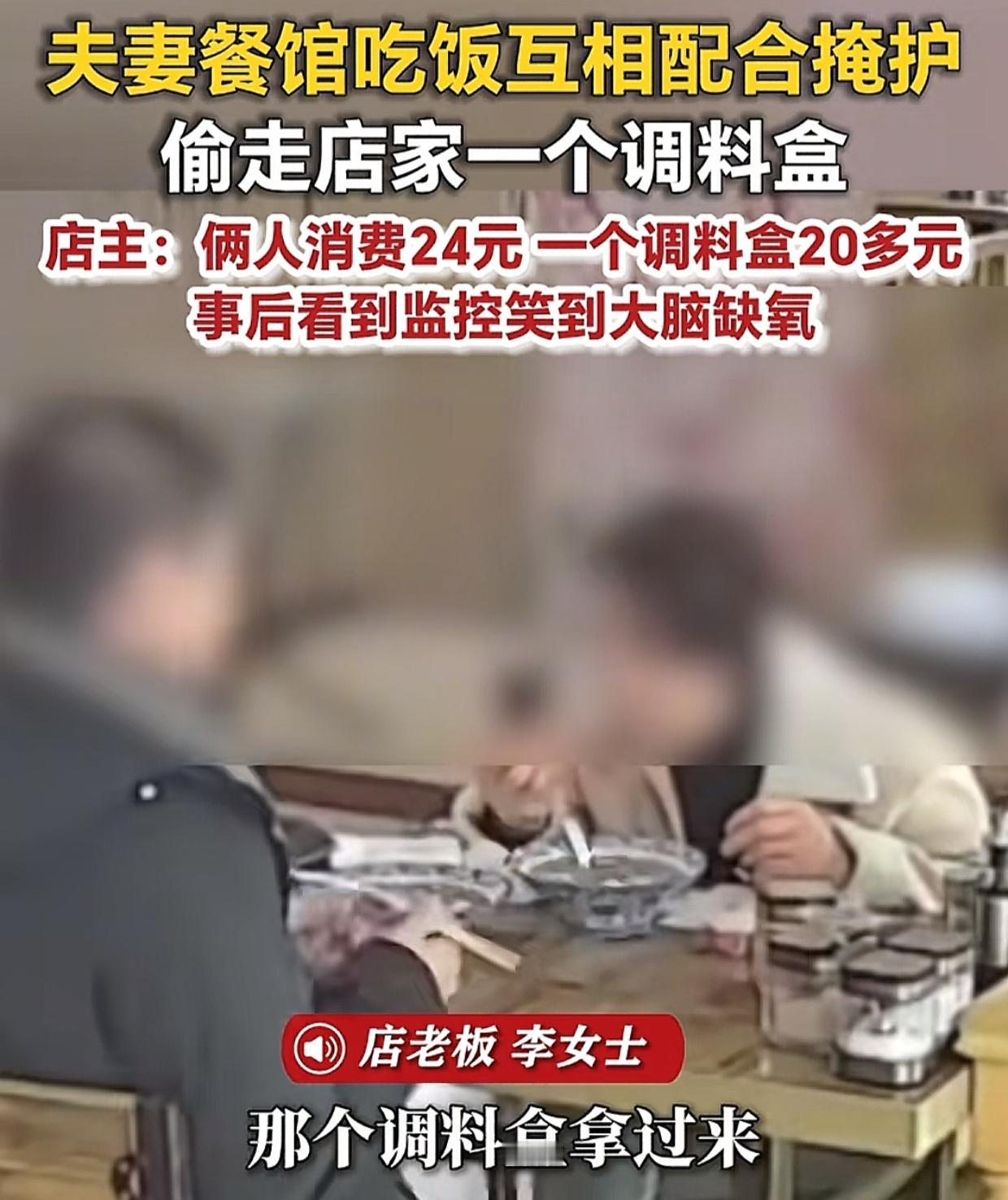 黑龙江哈尔滨,一对夫妻花24元在羊肠汤馆吃饭,临走偷偷顺走了20多元的调料盒,老板娘找了两天没找到,翻看视频后,笑到脑缺氧!