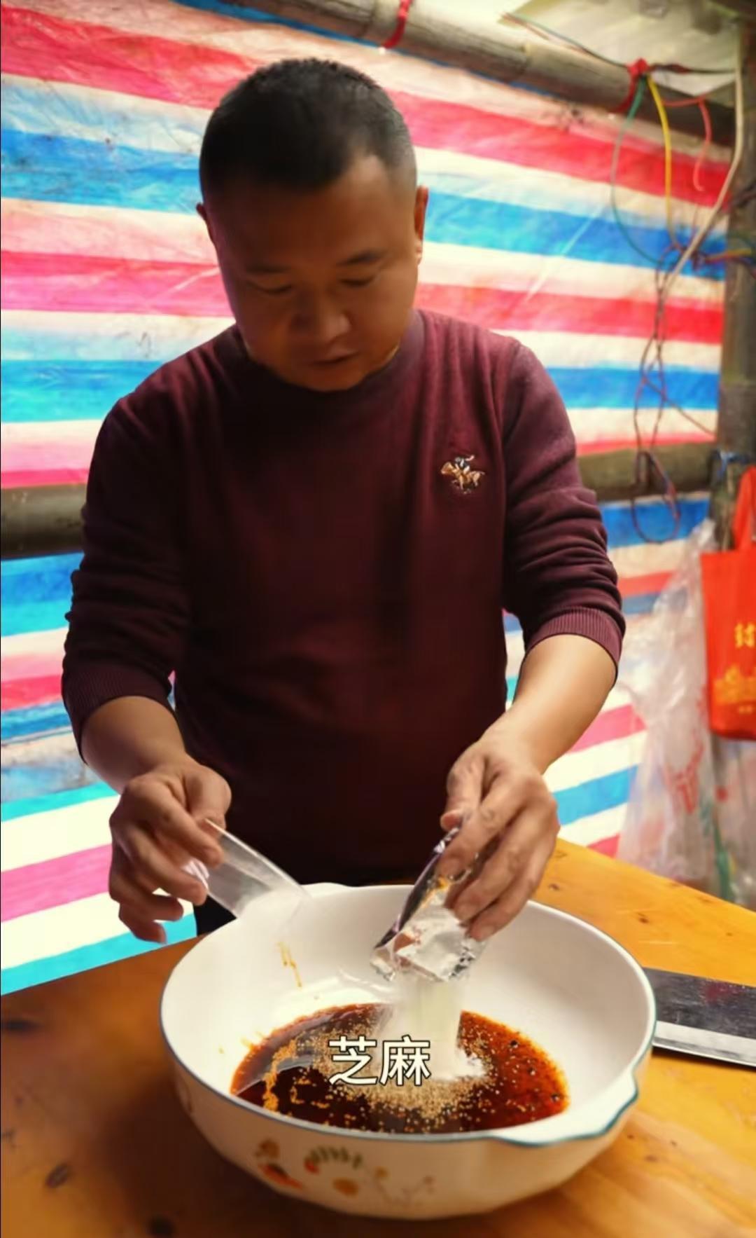 说真的,本来以为这就完了,结果师哥居然用钵钵鸡料煮肥肠!我本来还觉得黑暗料理,结果看他们吃得那叫一个香,四哥还说“钵钵鸡料拌啥都给力”,看得我当场就下单了两包,太棒了!