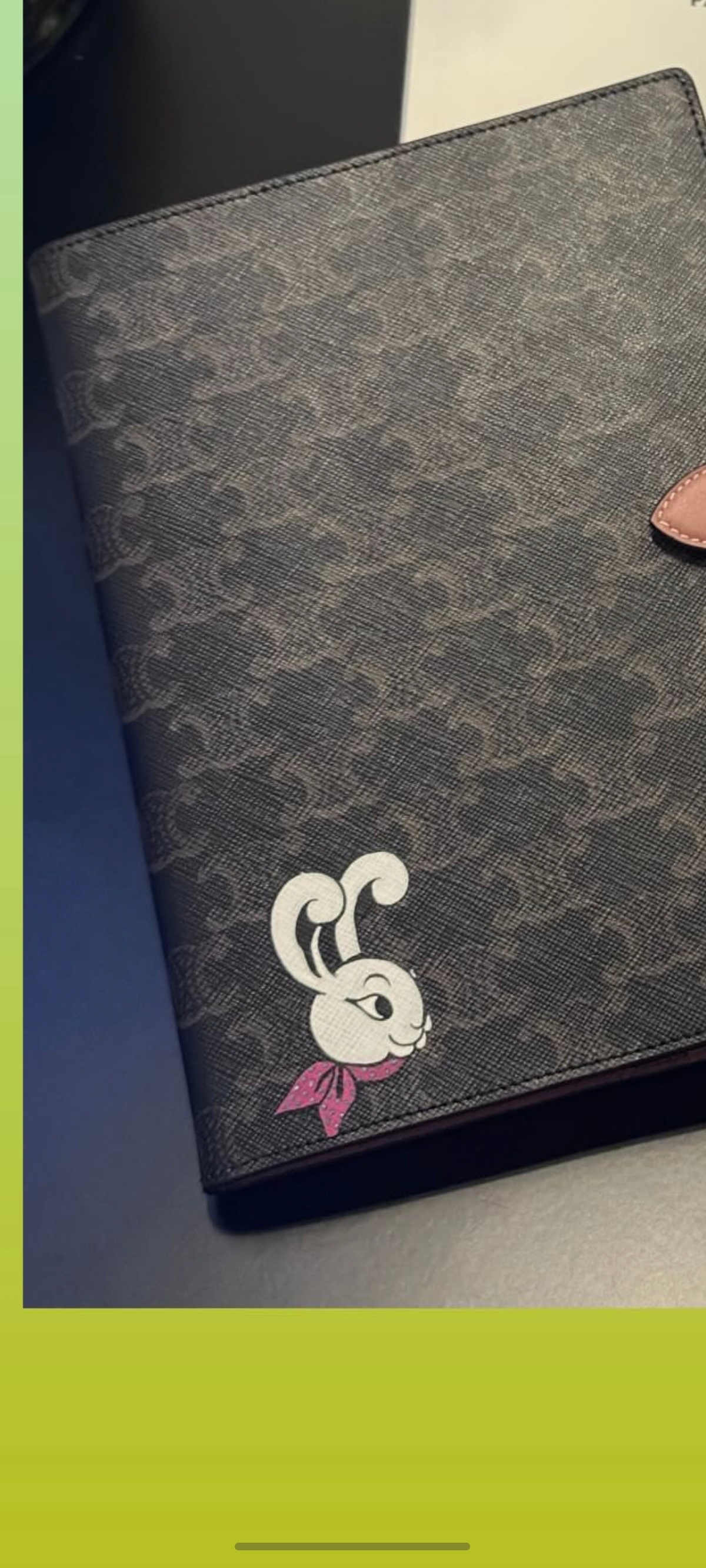 原来这个护照夹和笔记本的图是独家手绘,张园活动特别定制款那这个兔子确实是品牌Celine根据姐的生肖和形象特意定制设计