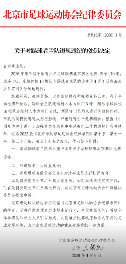 足协将深入调查中青赛u10组假赛 U10孩子被指挥互射自家球门,3-3“默契平局”只为避开强敌。中青赛 U10 假赛性质恶劣,严重扭曲孩子价值观。足协联合北京体育局成立调查组,对涉事教练、领队、赛事方追责到底。青少年足球容不得半点污垢,还孩子纯粹赛场,从严惩假球开始!