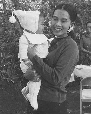 那两张九世夫妇抱着莎莉的照片,拍摄于莎莉九个月的时候,当时颂妃爹在清迈担任法官,九世夫妇每次在清迈公干,必定到颂妃娘家做客。拍照那天莎莉九个月,不会说话,不会走路只会爬,但是当九世抱起她时,她突然含糊不清的叫了一声“陛下”,在场的人都十分惊讶,九世非常开心,抱了莎莉很久,大家也都被莎莉逗笑。