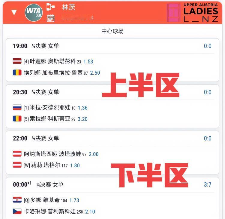 其中蒙特卡洛第一场男单1/4就看点十足,丰塞卡在今年先后被世一卡和世二辛上课后,在面对世3兹维列夫时,是否能有爆冷的可能?哈哈,好期待!!接下来就是辛纳和阿卡又陆续登场,最后一场是瓦舍罗这场,激情四射的瓦大师值得一看!再来到林茨女单1/4,必看的是塔格尔和波塔波娃的德比战,一个是初来乍到的转籍一姐,一个是土生土长的准一姐,大家觉得现场球迷会支持谁呢?网球赛事安排 蒙特卡洛大师赛男单1/4