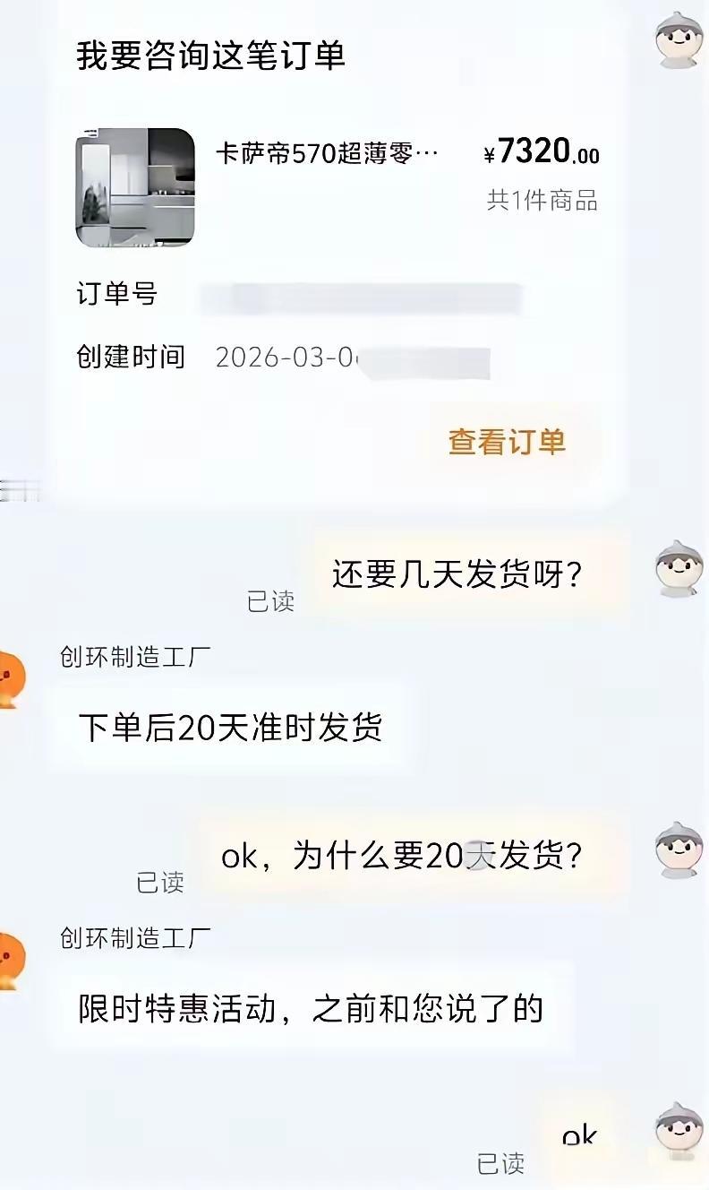 可他越催越觉得不对劲。客服从“明天发”变成“加急发”,最后只剩自动回复,连个人影都没了。拖到最后,订单自动确认收货,七千多块钱直接进了商家口袋。