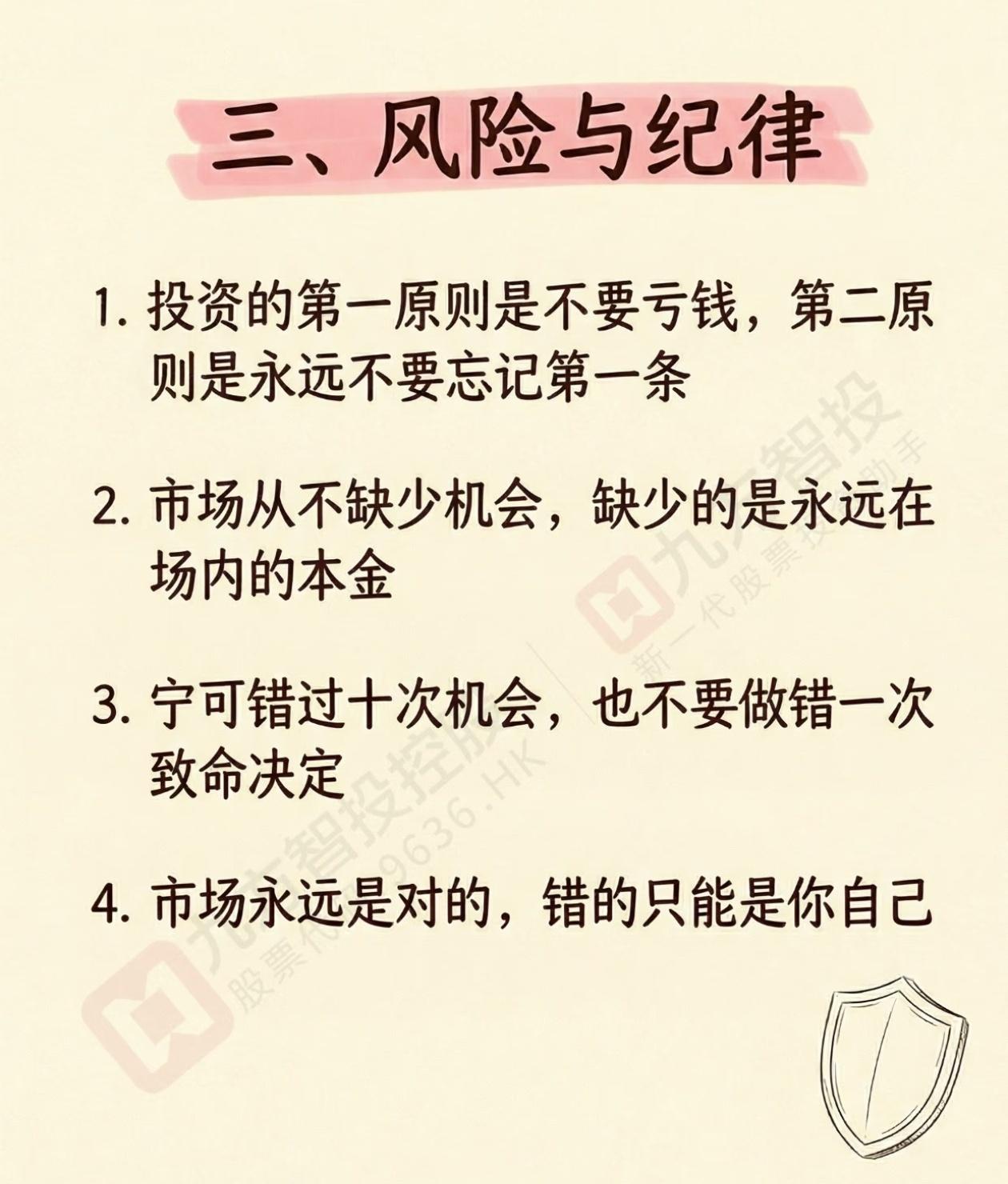3. 宁可错过十次机会,也不要做错一次致命决定——错过是少赚,做错是亏本金。