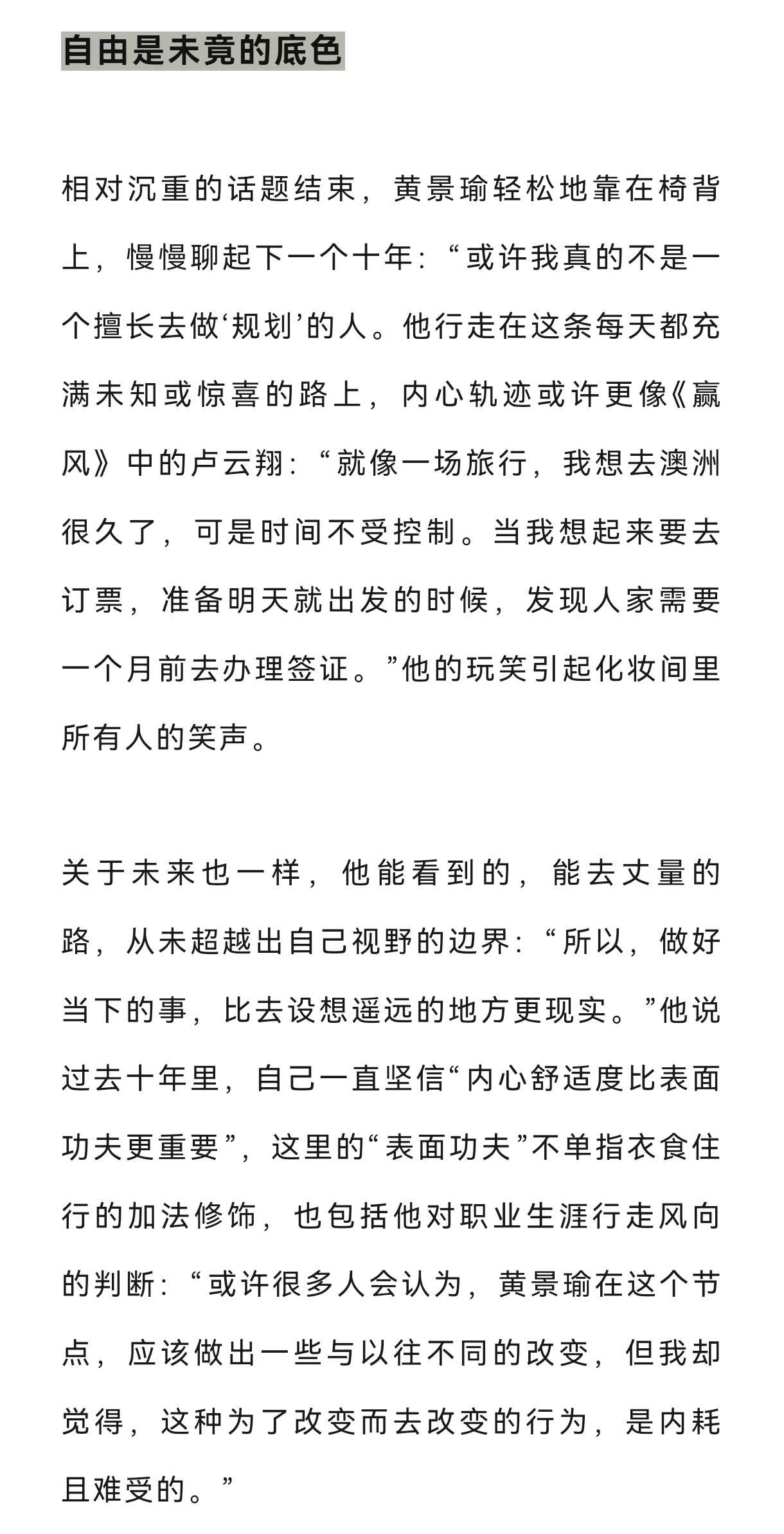 黄景瑜︱《时装LOFFICIEL》︱采访文字节选2026年四月封面故事,关于自己