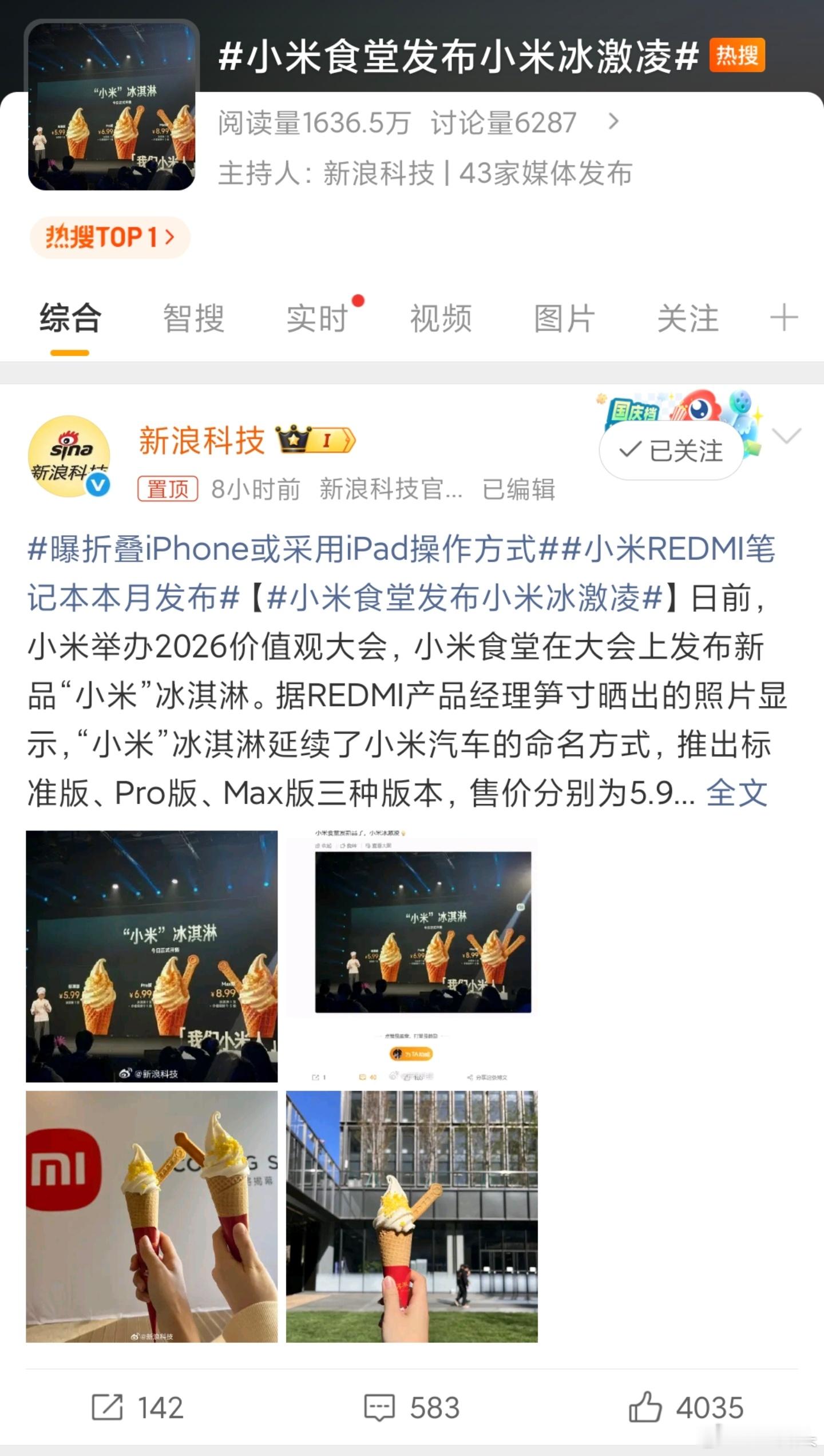 小米食堂发布小米冰激凌 要钱就直说!搁这儿套娃拐弯抹角…一个冰淇淋这么高热度也太离谱了