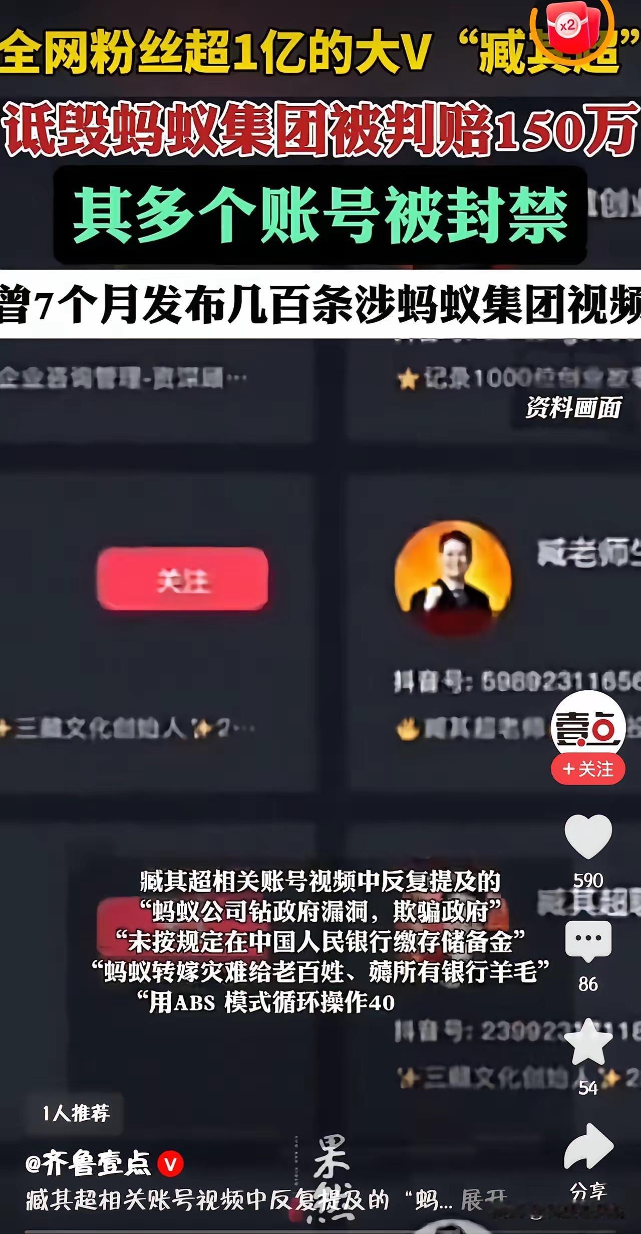 他编造蚂蚁集团违规运营、钻政策漏洞、收割普通人等虚假信息,恶意抹黑企业博流量。