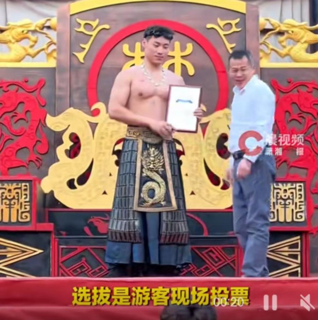 舆论发酵到4月7日,景区工作人员出来交了底。这次选拔的计分规则非常透明,权重被拆解成了三个维度:游客现场投票、线上网友点赞数、综合评分。刘宇航能夺冠,完全是这三项硬指标累加出来的结果,没有任何暗箱操作的空间。从现场流出的画面来看,这个25岁的小伙子身材魁梧,五官硬朗,确实撑得起西楚霸王那种力拔山兮的硬汉形象。游客拿脚投票,网友用手指点赞,说明大众对“项羽”的审美预期非常具象化,就是要这种充满男子气概的视觉冲击力,至于他老家在哪、户口本上叫什么,在绝对的形象匹配度面前,大家反而没那么较真。