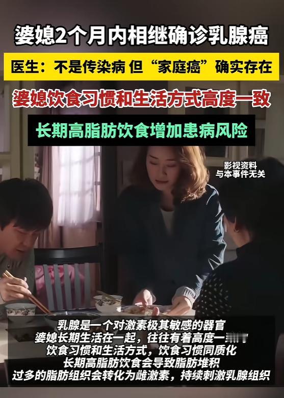 我始终觉得,这对婆媳接连患病,最核心的原因,就是她们长期同吃同住,养成了一模一样的生活习惯,而这些习惯,恰恰是诱发乳腺癌的重要因素。