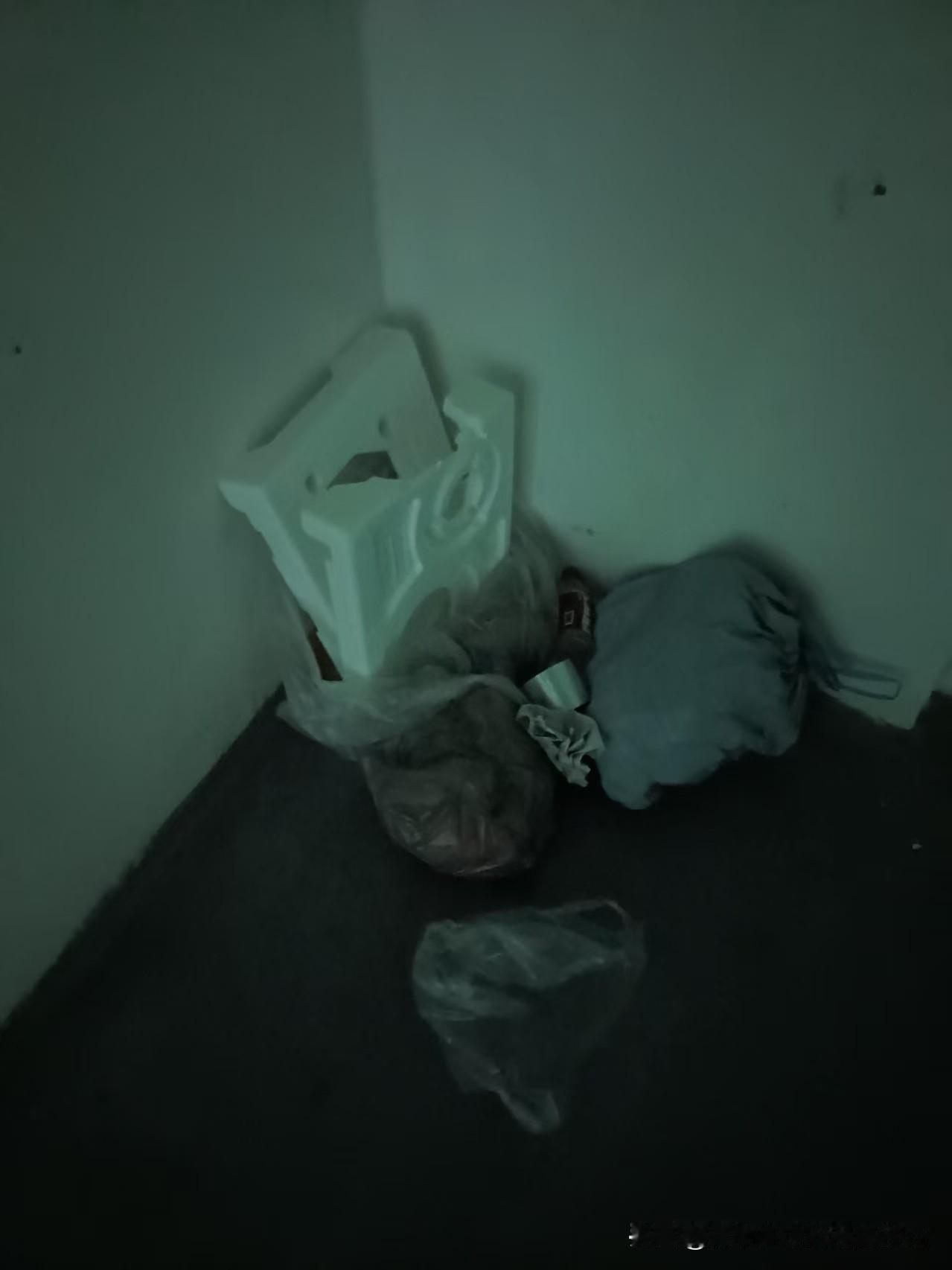 “依稀记得连廊里那俩小东西年前就有,所以到现在物业也没打扫过呗。。。过道倒是拖过一遍,好家伙,拖完更脏了,后来就是我自己每天拖一遍,连带电梯口,现在好像完全没有人打扫[抠鼻],楼梯口上回发了打扫了,恩,没打扫干净,走哪哪哪都是鞋印子”