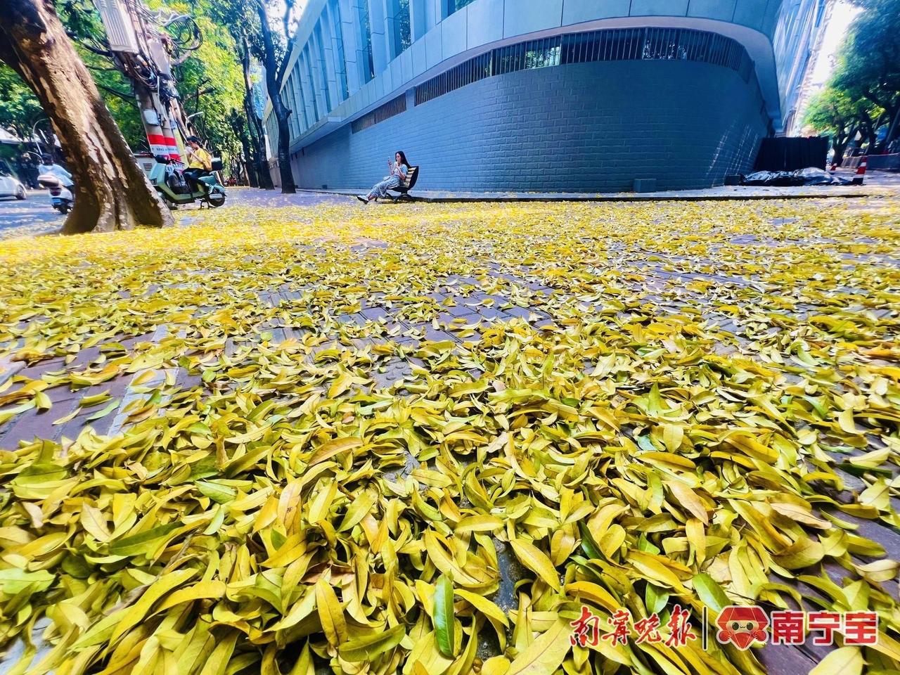 提起落叶,多数人第一时间想到萧瑟的秋天,可在南宁,春天才是落叶的主场。在南宁市人民公园内,一场限定版春日浪漫正在上演,金黄的叶片随风飘落,铺满整条步道,瞬间刷屏不少人的朋友圈。
