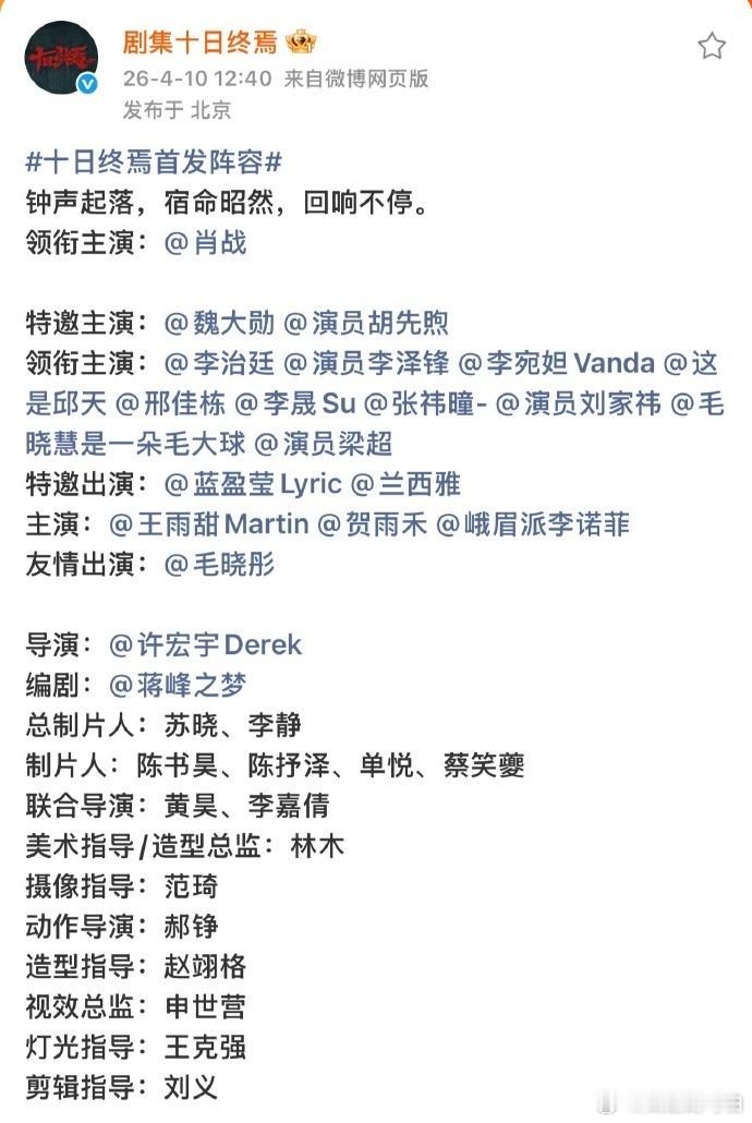 对《十日终焉》未官宣的演员更为期待了,不知道还有多少能扛剧的主角在赶来友情出演的路上