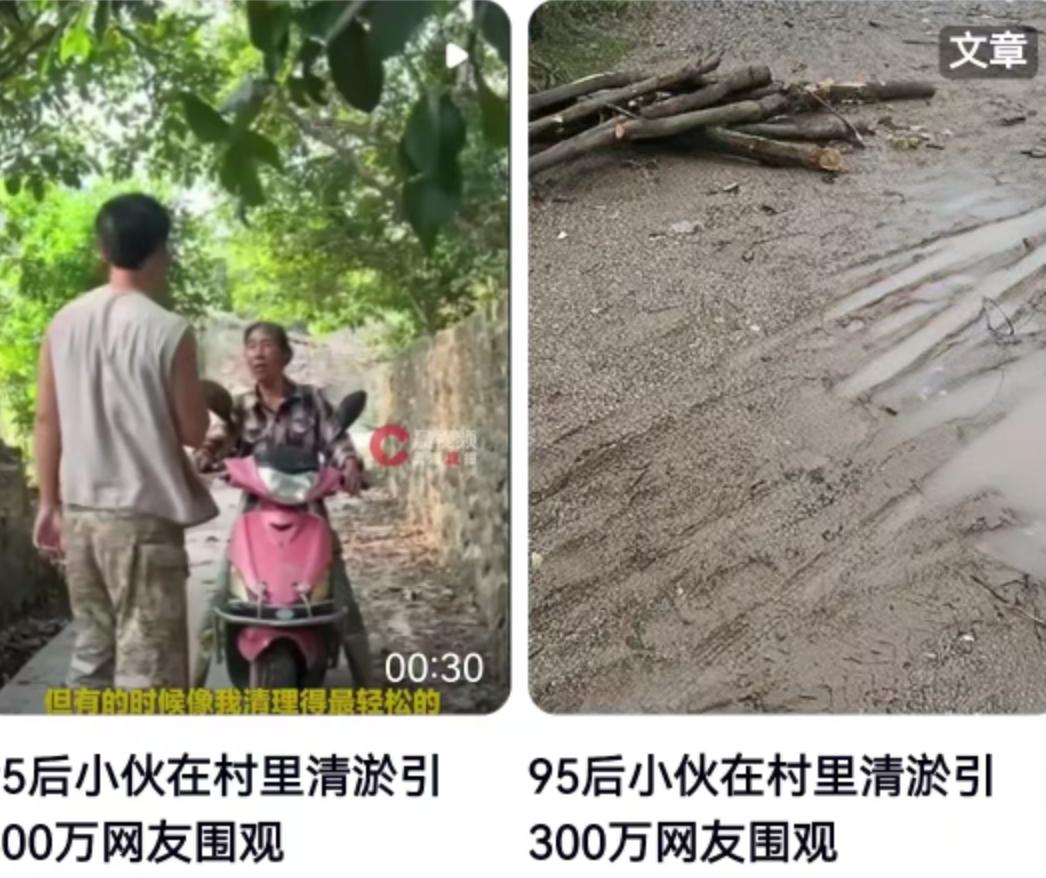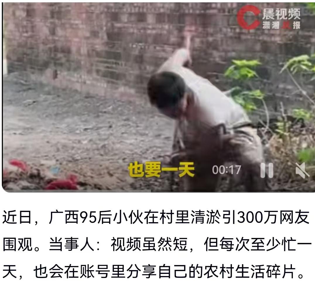 近日,广西一位95后小伙在村里清淤的视频火爆网络,短短时间吸引超300万网友在线