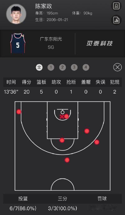四、陈家政在这个赛季与四川的比赛中13分钟20+的得分。