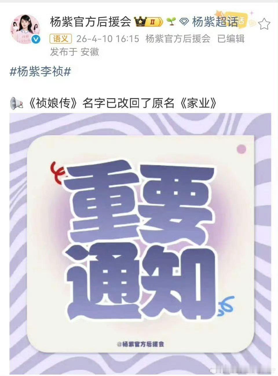 杨紫祯娘传已改回原名《家业》期待祯娘传已改回原名家业