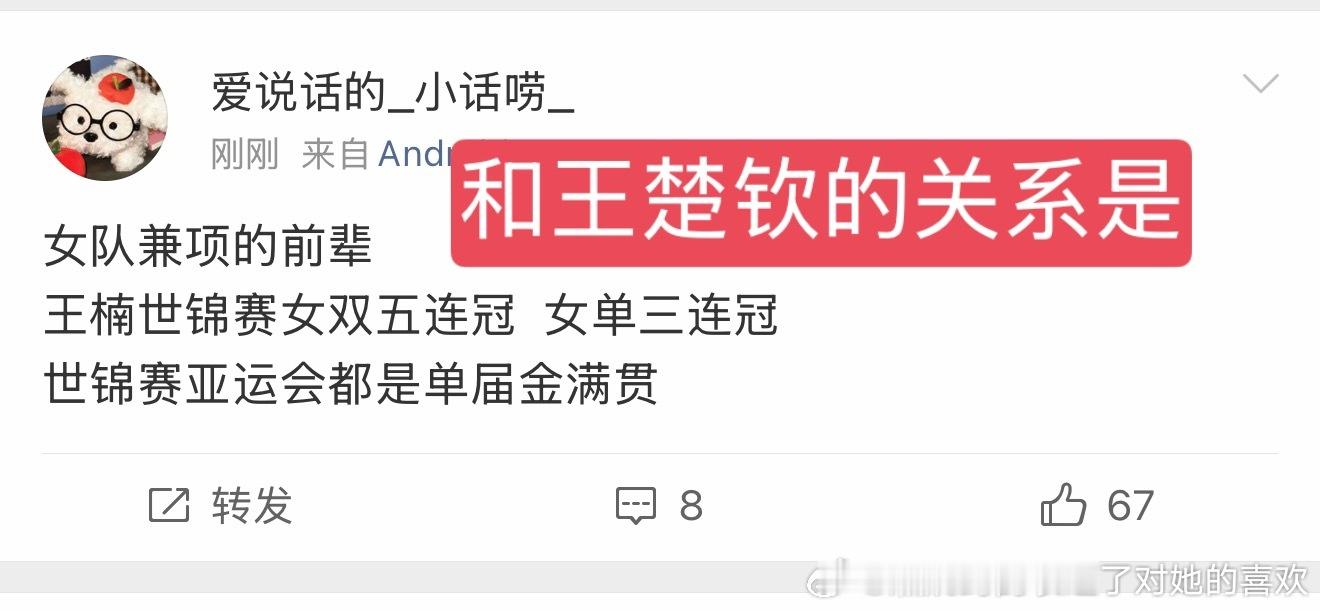 我很好奇女队前辈的冠军到底和王楚钦有什么关系,人家拿了一万个世界杯冠军,能让王楚