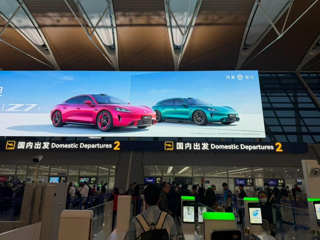 进航站楼前我以为是小米 su7 的广告,结果走近了发现是上界 Z7。我还跟我同事