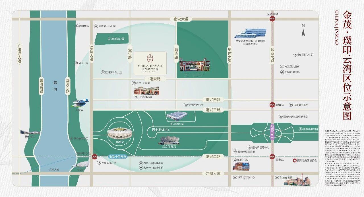 金茂·璞印云湾项目位于西安浐灞国际港全运路以东、港安路以北,在绿城全运村木兰郡组团的西南角,由鼎诚置业摘地,引入金茂代建,占地面积约31亩,容积率2.2,规划6栋17层小高层;