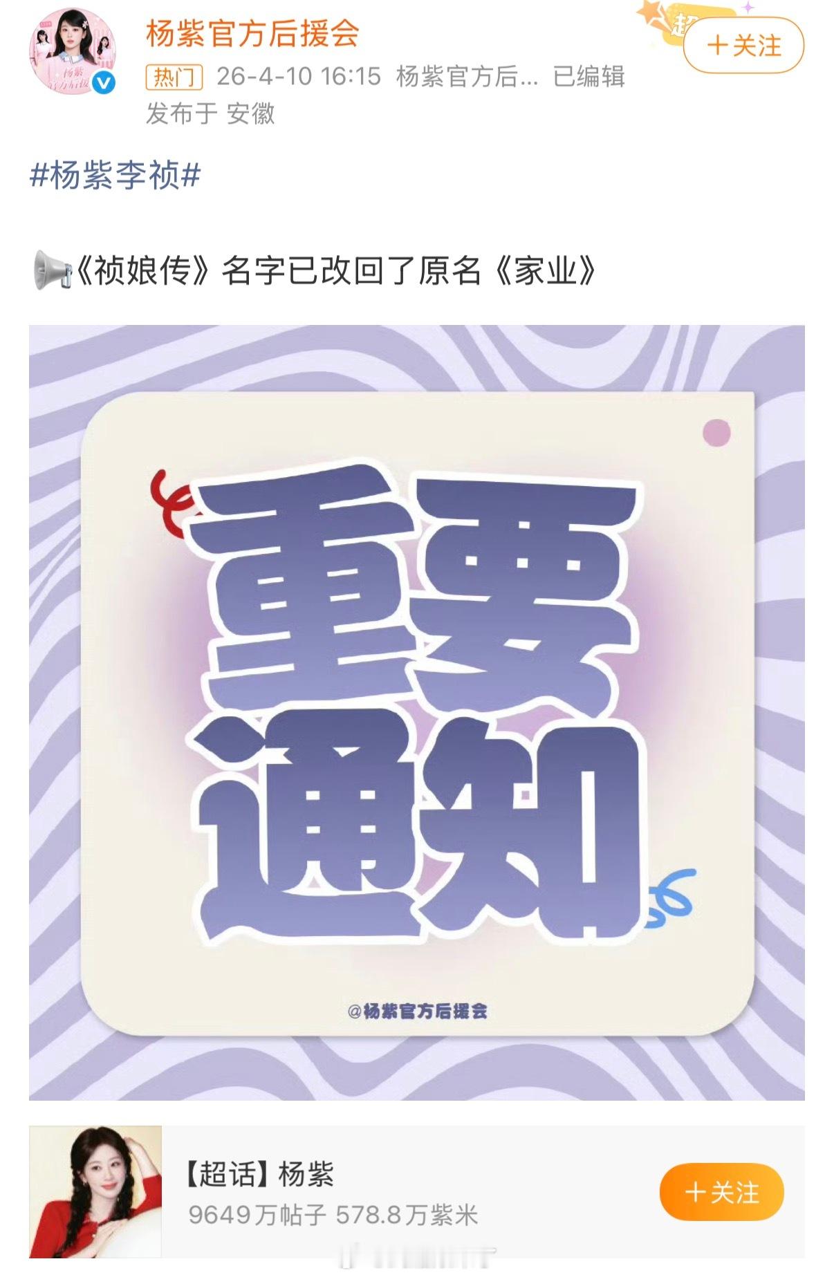 杨紫《祯娘传》名字改回了原名《家业》 可以的,家业这个名字更正剧更大气