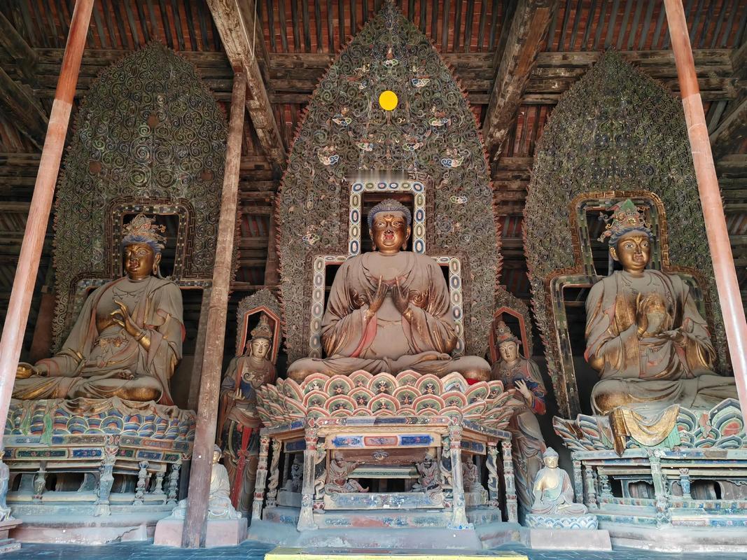 ‌分享朔州著名美景,金代建筑瑰宝崇福寺‌,崇福寺内的弥陀殿有“金代五绝”(琉璃脊饰‌、‌雕花门窗、‌巨匾“弥陀殿”‌、塑像背光‌、