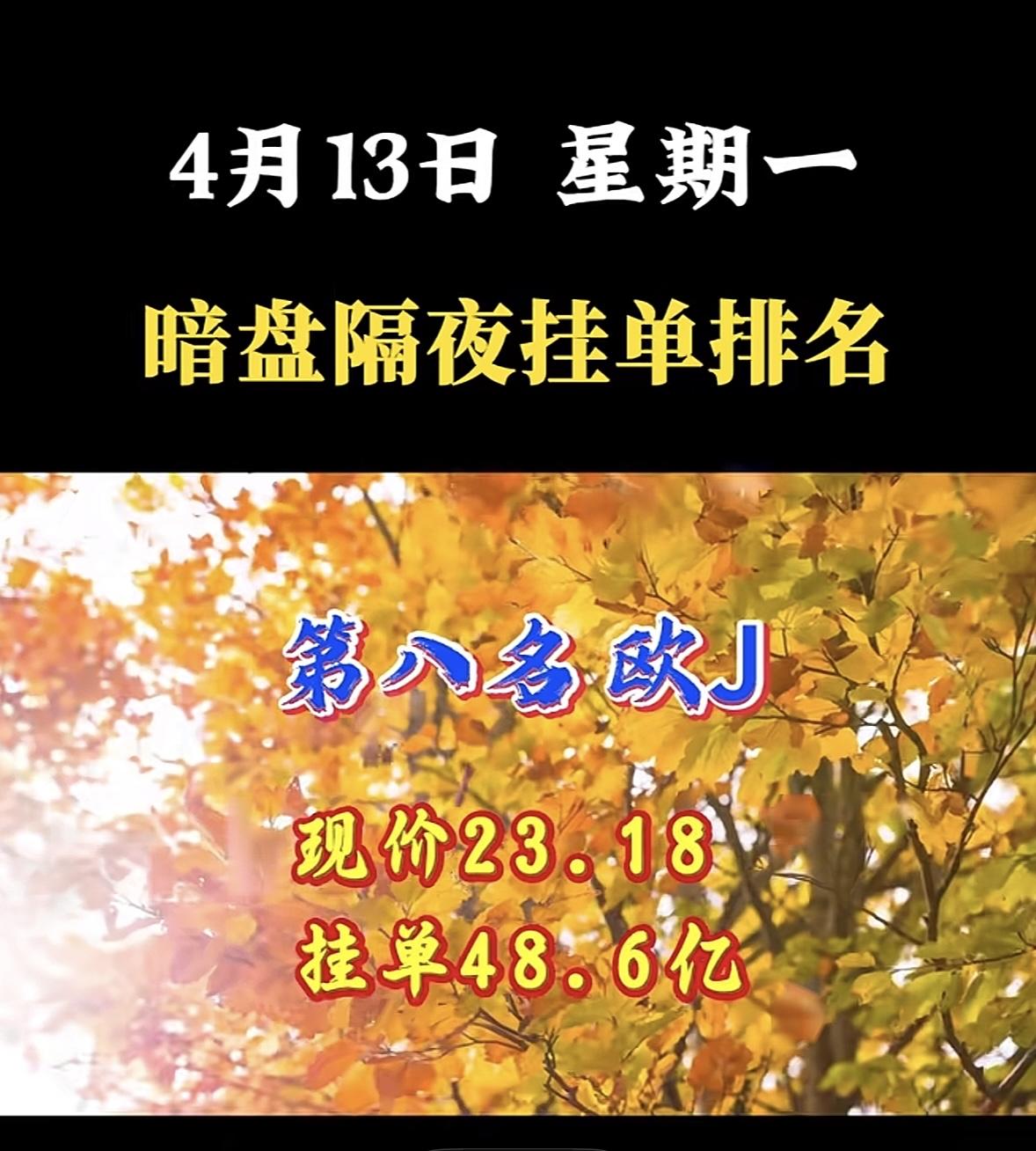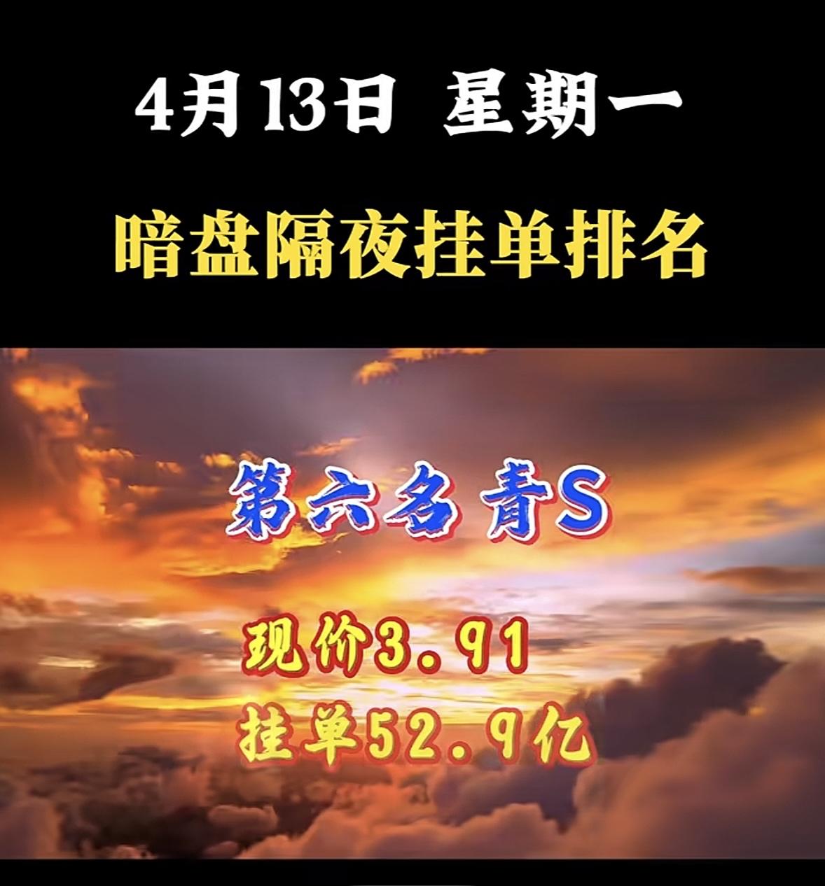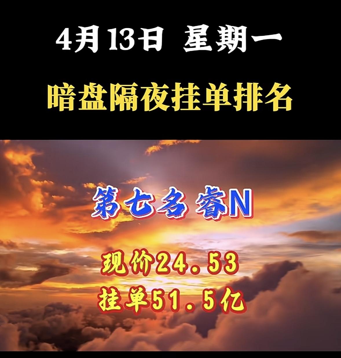 4月13日周一暗盘隔夜挂单排行榜出炉