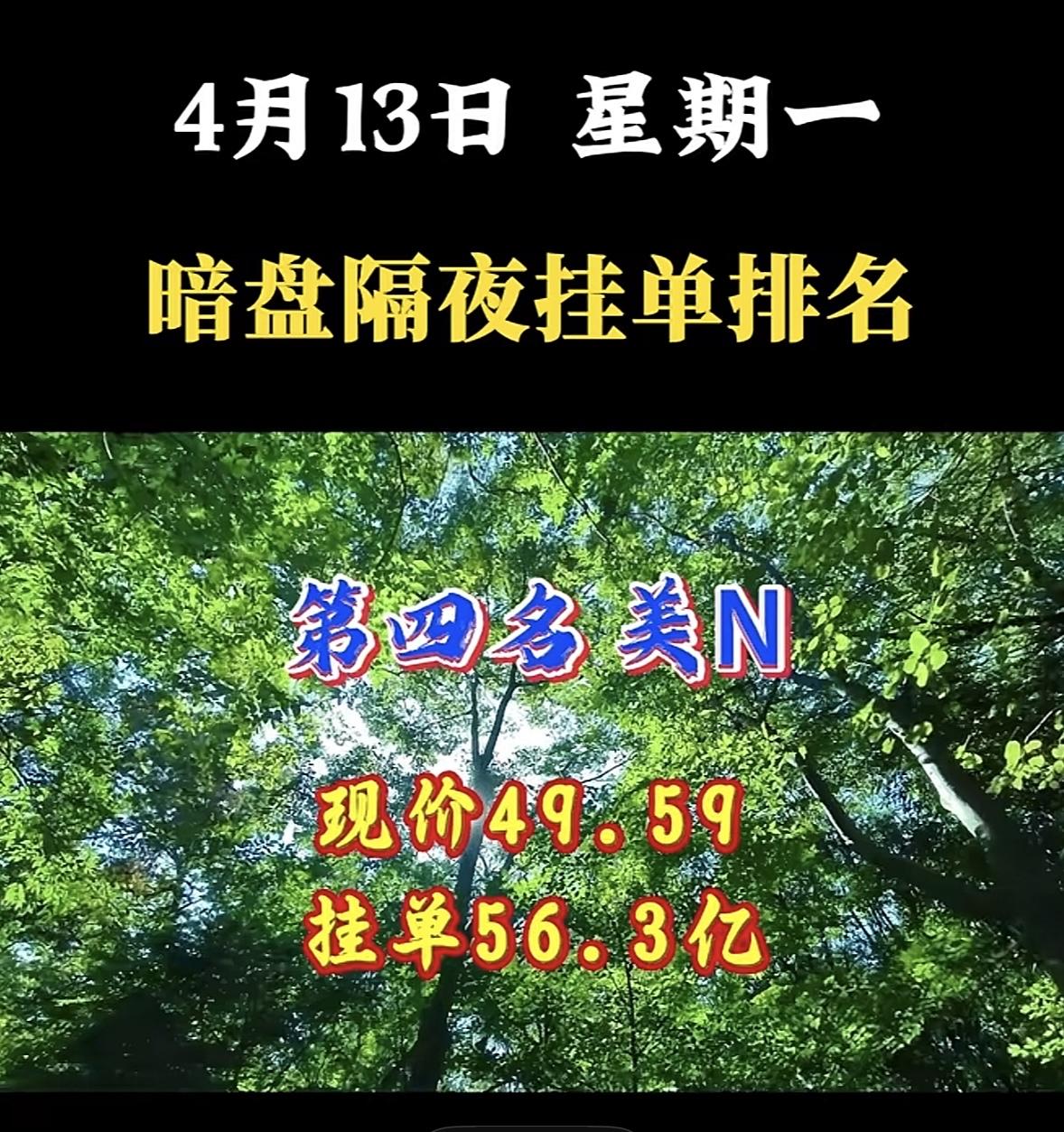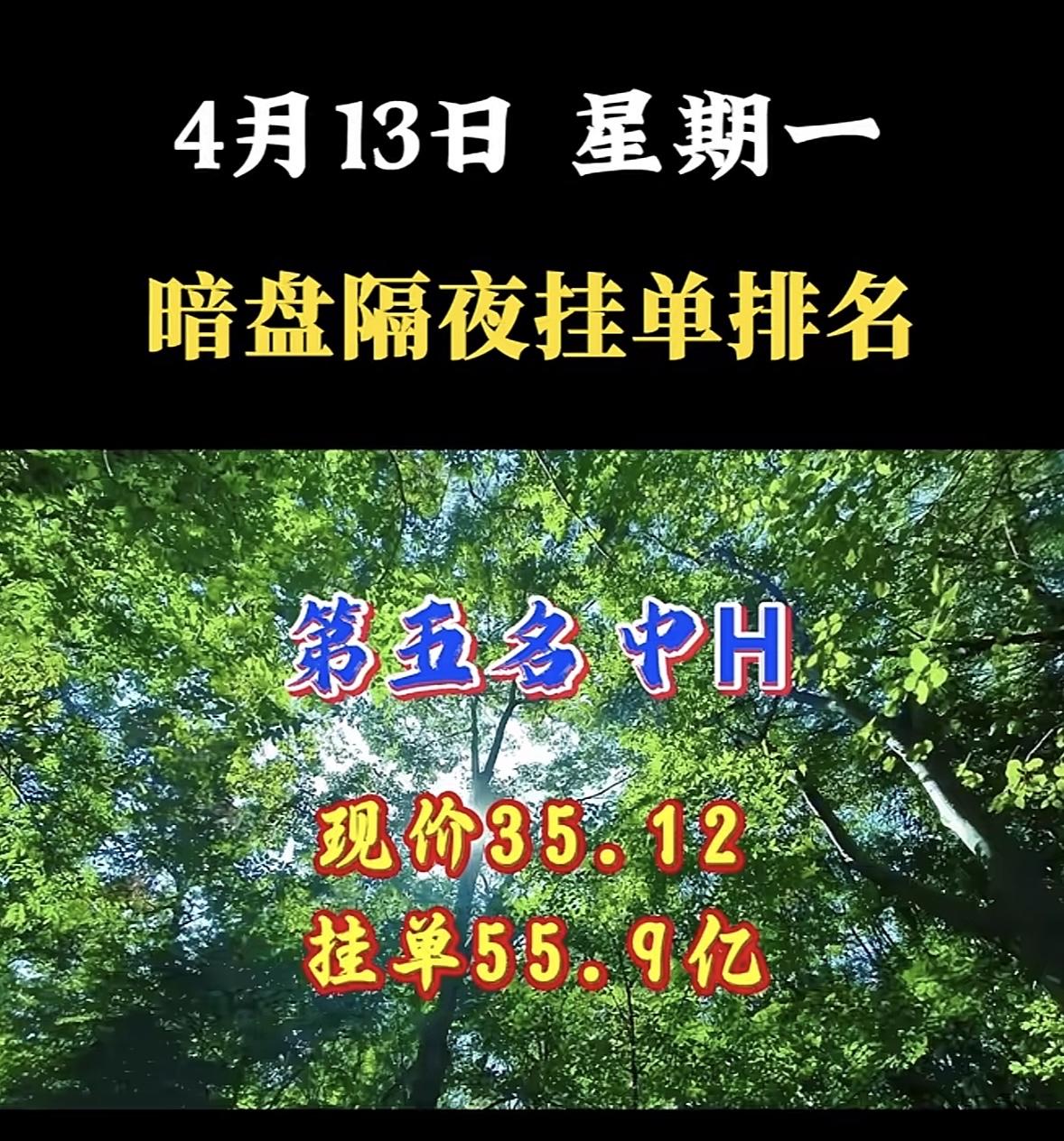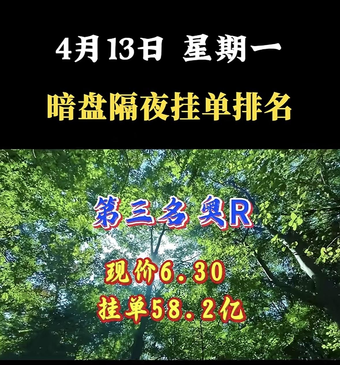 4月13日周一暗盘隔夜挂单排行榜出炉