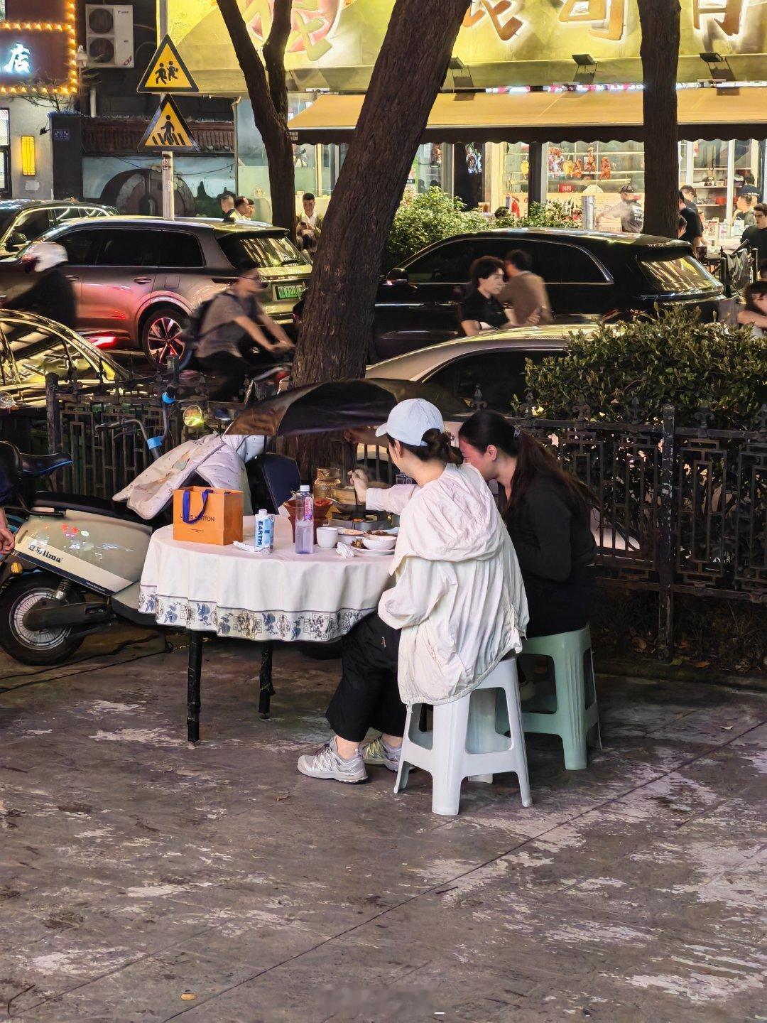 武汉暴雨该说不说还是武汉人敢为人先吃饭吃着下雨了直接打把伞菜不淋到雨就可以大歌碎