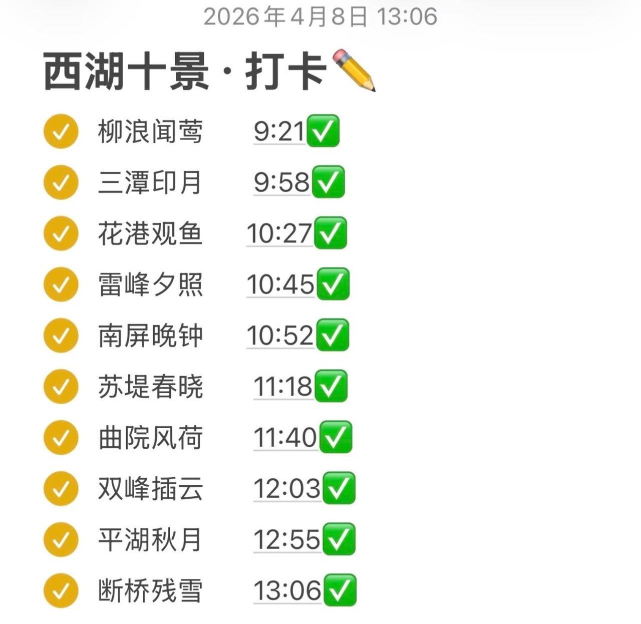 走遍“西湖十景”计划终于完成!