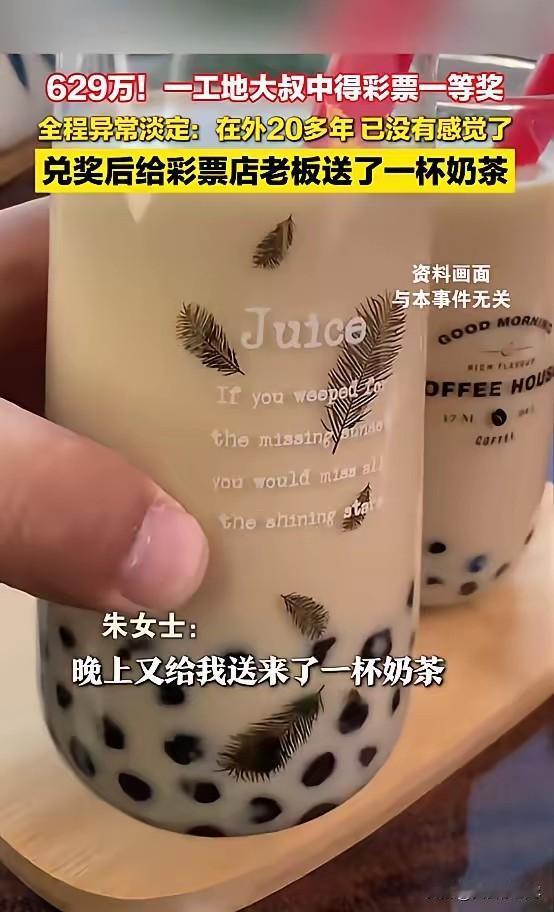 “太幸运了!”近日,安徽芜湖,一工地大叔买彩票后,中了629.15万大奖,但去兑奖的时候,十分淡定,老板差点都不相信他中奖了,直到核对无误后才确认,领完奖后,当天晚上大叔还送了一杯奶茶,和老板分享喜悦!网友:这心态绝了!