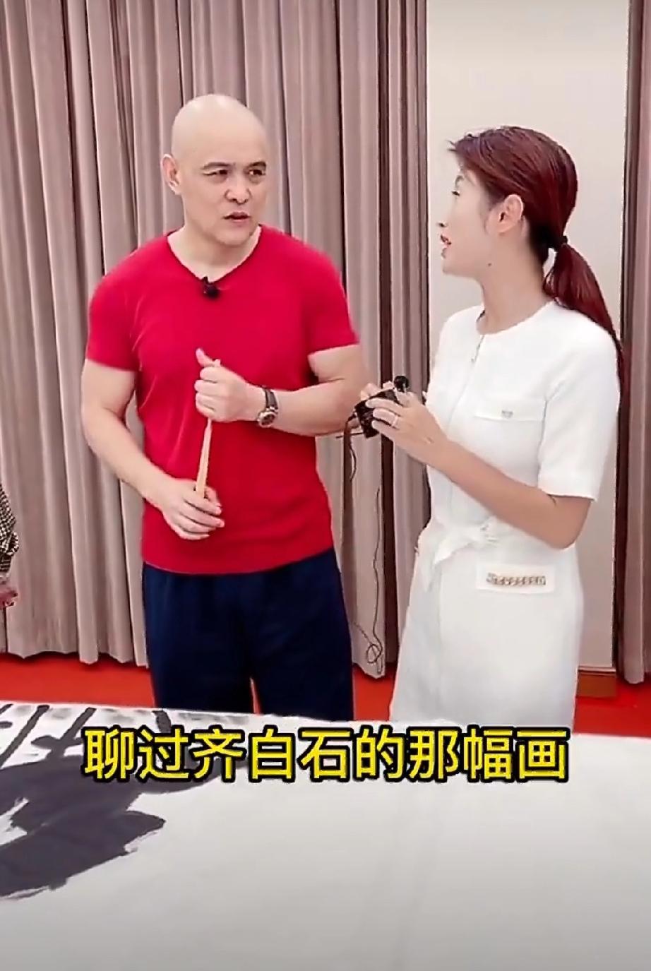 第二个,她拿着毛笔画了几只小蝌蚪,主持人也是各种夸啊,说陈老师的画,有国画大师齐白石的风格。