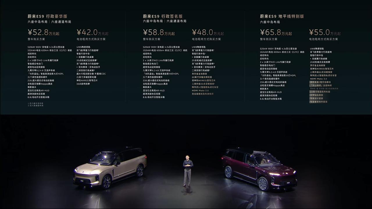 但我也得说句实在的,技术堆得再满,高端市场从来不是靠参数赢的。ES9预售52.8万起,BaaS租电后42万,直接对标问界M9、理想L9,甚至摸到宝马X7、揽胜的地盘。网友评论很真实:有人说“国产终于有能跟BBA硬刚的纯电旗舰”,也有人吐槽“配置太满,家用根本用不上,价格还是高”。