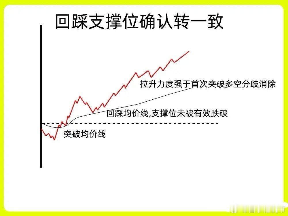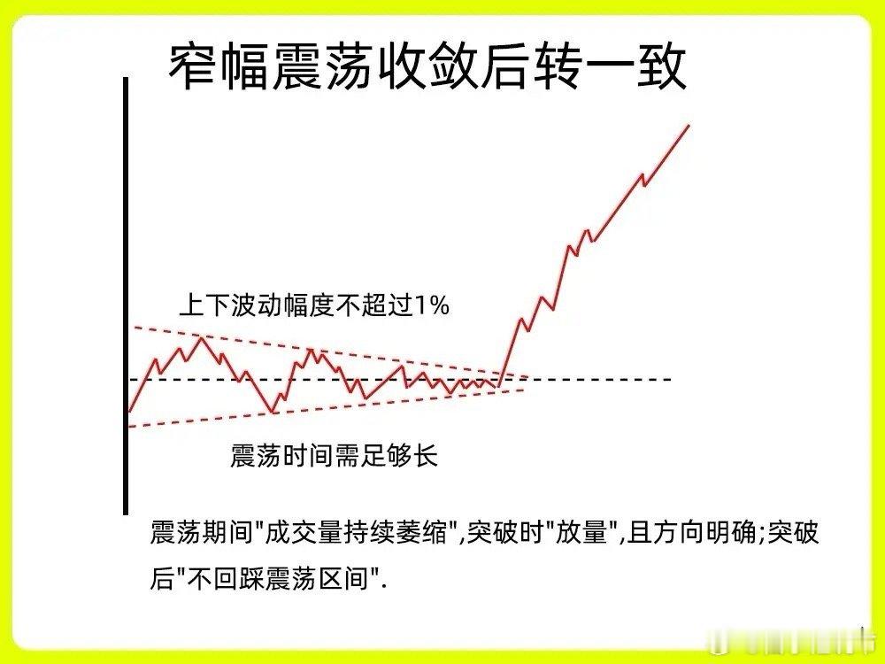 注意,很多人想法就错了!做为一个合格的短线选手,分时图是首先要会看的这个视图,短线重要的时间段,能把握主力动态,所以分歧转一致,就显得特别重要。如果你还不知道什么是分歧转一致,那这期内容一定要认真看完点赞收藏或,每天分享炒股干货,以免以后想温习找不到了一、窄幅震荡收敛后转一致在分时图里,股价一般会走出收敛三角形或是矩形,在分歧阶段,股价出现上下震荡的走势,从原来宽幅震荡,慢慢变成窄幅震荡,波动空间越来越小,当然成交量也从开始放量到逐步缩量的一个过程,放量代表换手,筹码交换比较激烈,到最后的缩量,代表市场抛压开始变弱,没有太多的筹码换手。随着股价收敛,最后出现放量,开始突破震荡的这个平台,形成市场一致性的情绪,说明主力洗盘结束。二、突破关键阻力位转一致股价一直在股价压力位下方运行,一般是前期的高点,平台的上沿或是高开的开盘价位置。股价多次试探压力位,在分时图里就会出现股价冲高回落,反复试探的一个过程,这就是市场分歧。随后股价突破压力位,并且能站稳压力位,同时成交量一般会很大,因为市场情绪处于一致状态,抛压很弱。三、回踩支撑位确认转一致股价早盘开盘以后,股价出现放量冲高,随后开始回调,均价线和开盘价就是一个关键的位置,股价在回调过程里,成交量出现缩量,回踩均价线,开始止跌企稳。说明支撑位有很强力度。随后出现放量上涨,这是我们最为常见的主力洗盘手法。整个趋势比较明显,好了!以上就是分歧转一致的三种分时图。下方我准备了三种案例图,建议文章和案例一起看。希望对大家有启发,也是最为基础的内容,一定吃透。