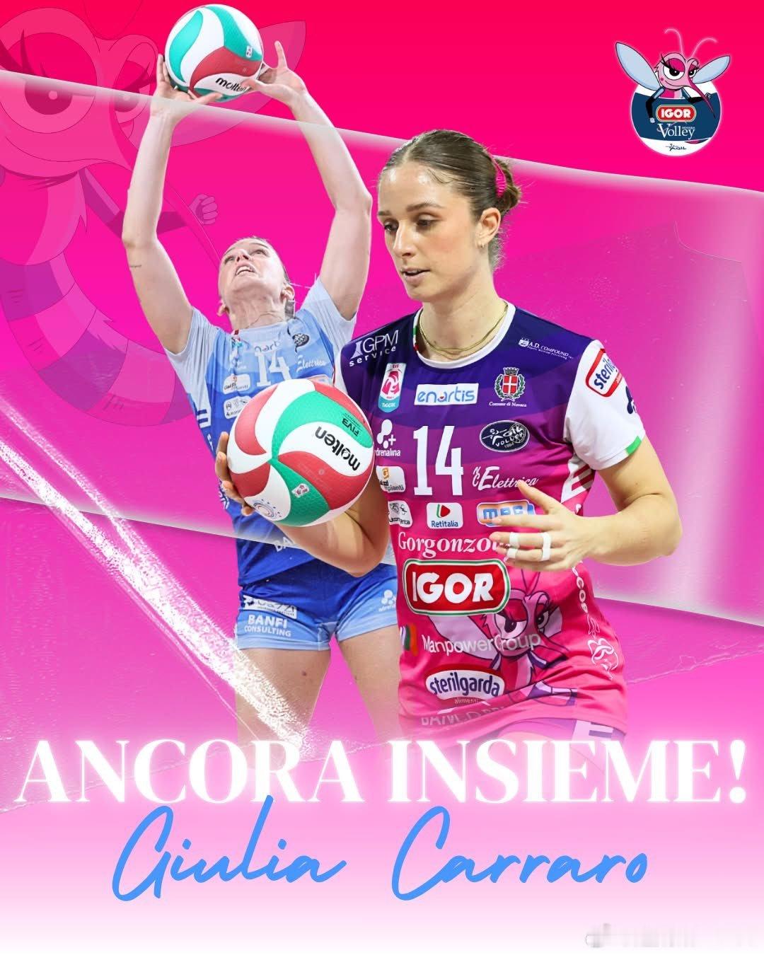 排球 🔵 诺瓦拉女排官方宣布,已与本土二传茱莉亚.卡拉洛续约。