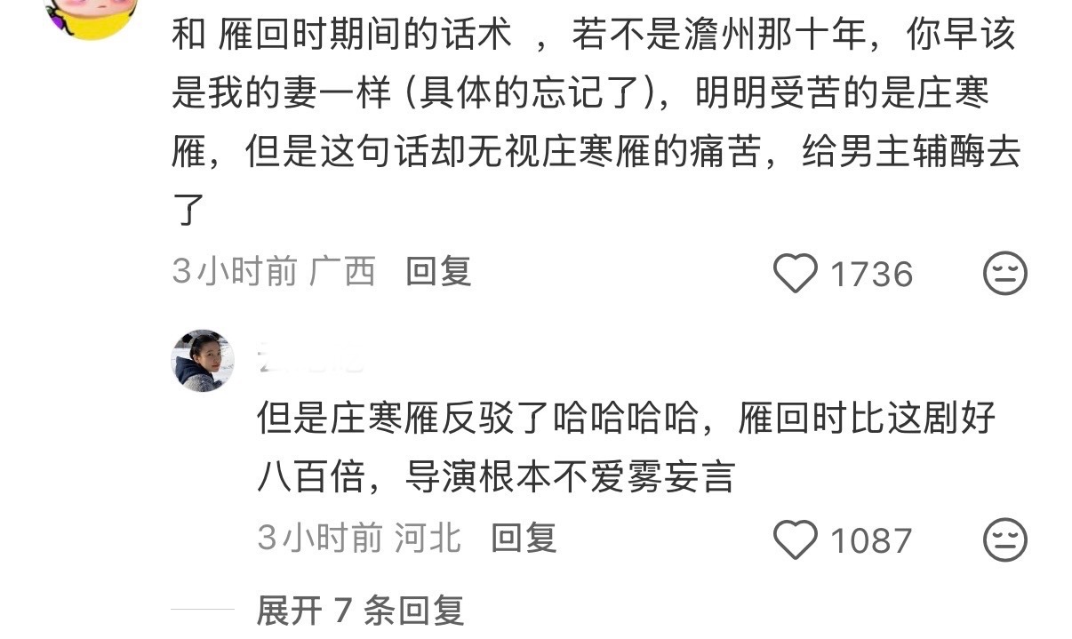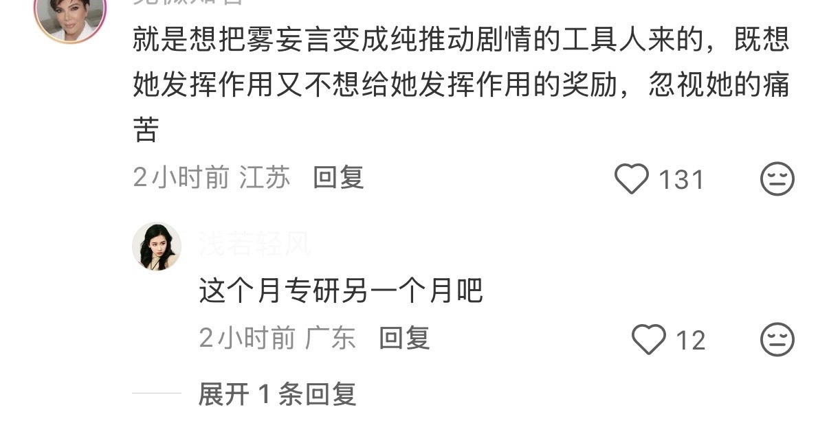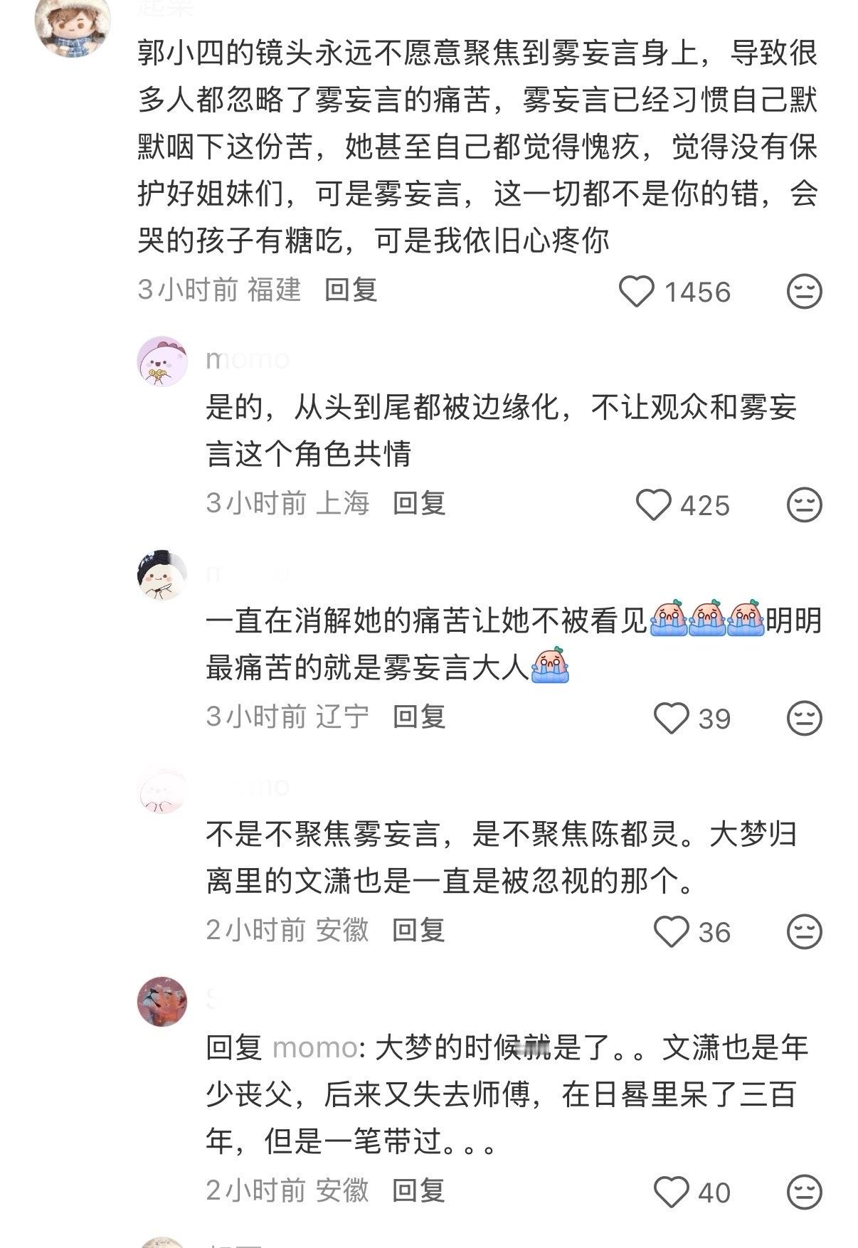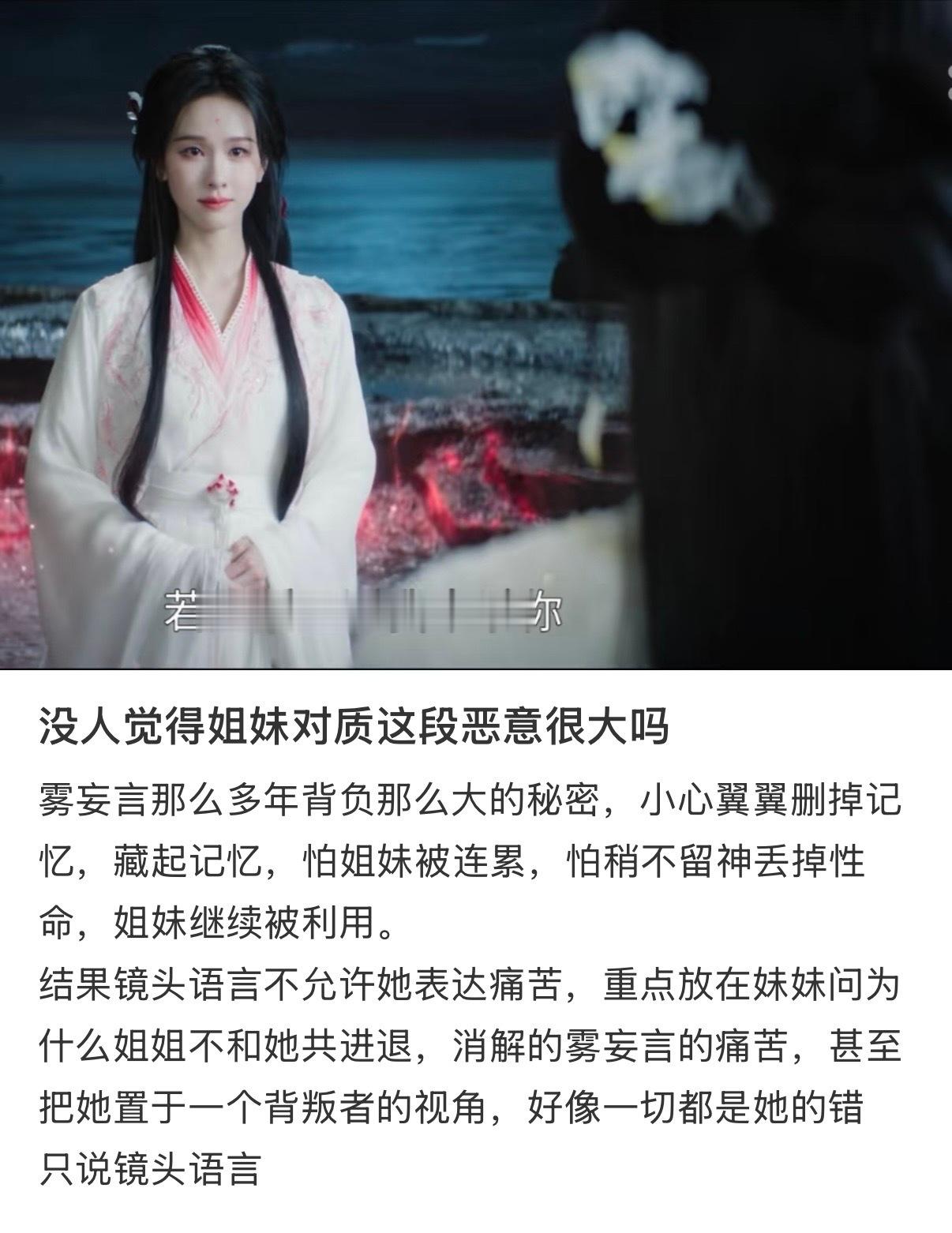 这个🍠姐妹完全嘴替,plq完全逆反的,这个郭四Wpg 啊,从头到尾把雾妄言边缘化,不给发挥空间快速切走不被偏爱的镜头,不让观众跟雾妄言这个角色共情,不过还是能在碎片里拼凑看见这个满是心事,负重前行有爱有情有义的雾妄言🥹郭四的剧完全是在捏人设不顾剧情,看的让人心累