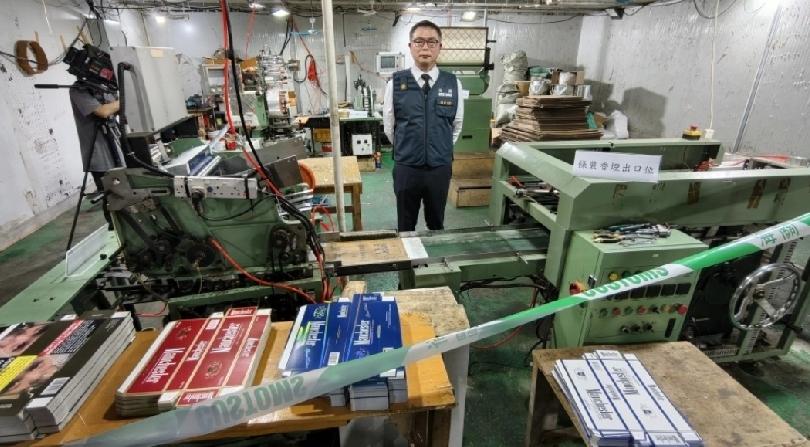 据了解,海关税收罪案调查科早前针对一个活跃于新界地区、组织严密的私烟集团展开深入调查,经缜密侦查后锁定粉岭坪𪨶一处偏僻隐蔽的铁皮仓为目标,于昨日上午展开突击搜查行动。执法人员在铁皮仓中央位置发现一处密室,内部架设了一条完整的私烟制造生产线,该工场实行24小时不间断运作,不法分子还特意在场内设置厨房、睡房、厕所等起居配套,让工作人员长期留宿、足不出户,以此减少外出暴露行踪、被查获的风险。