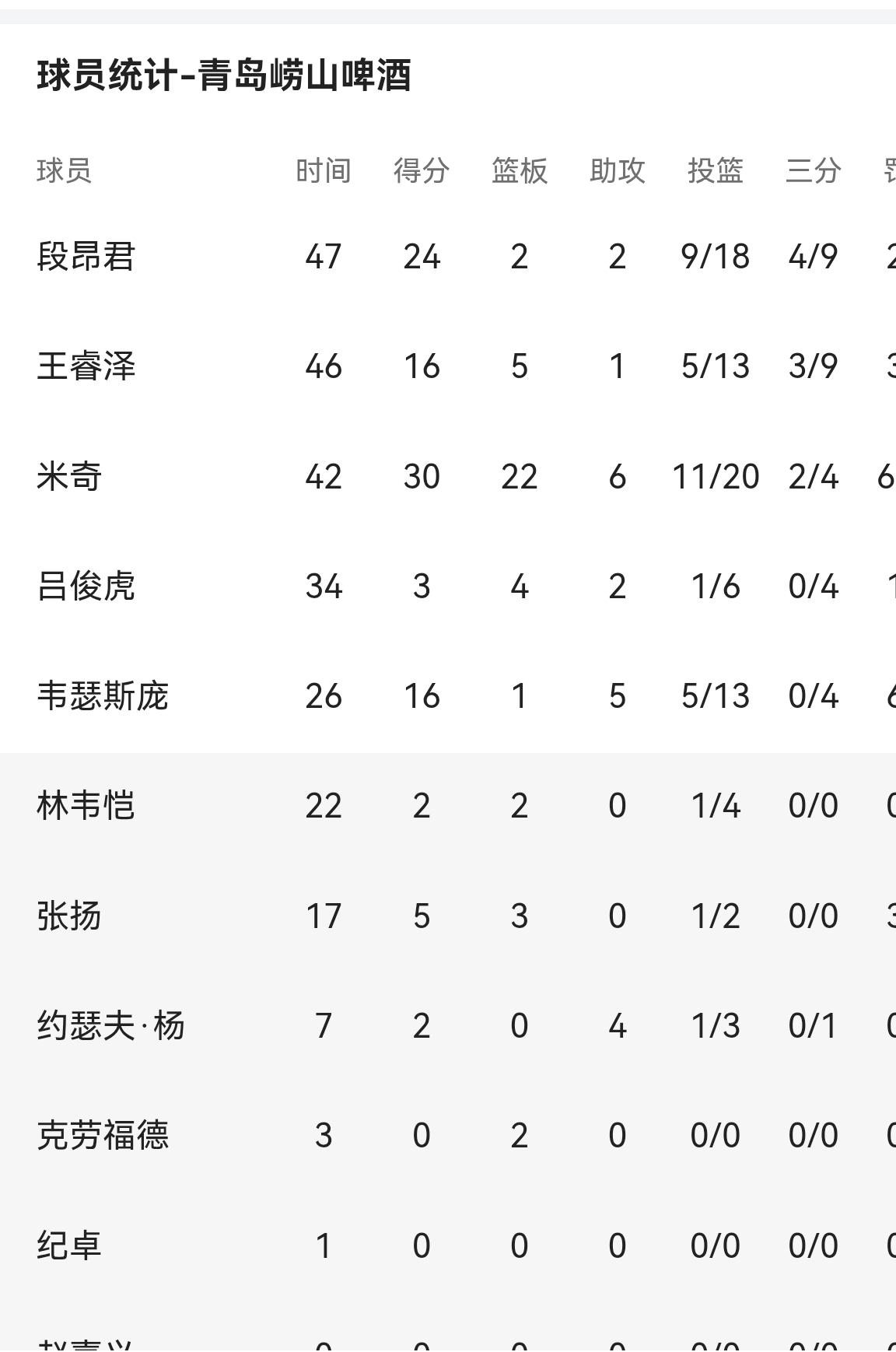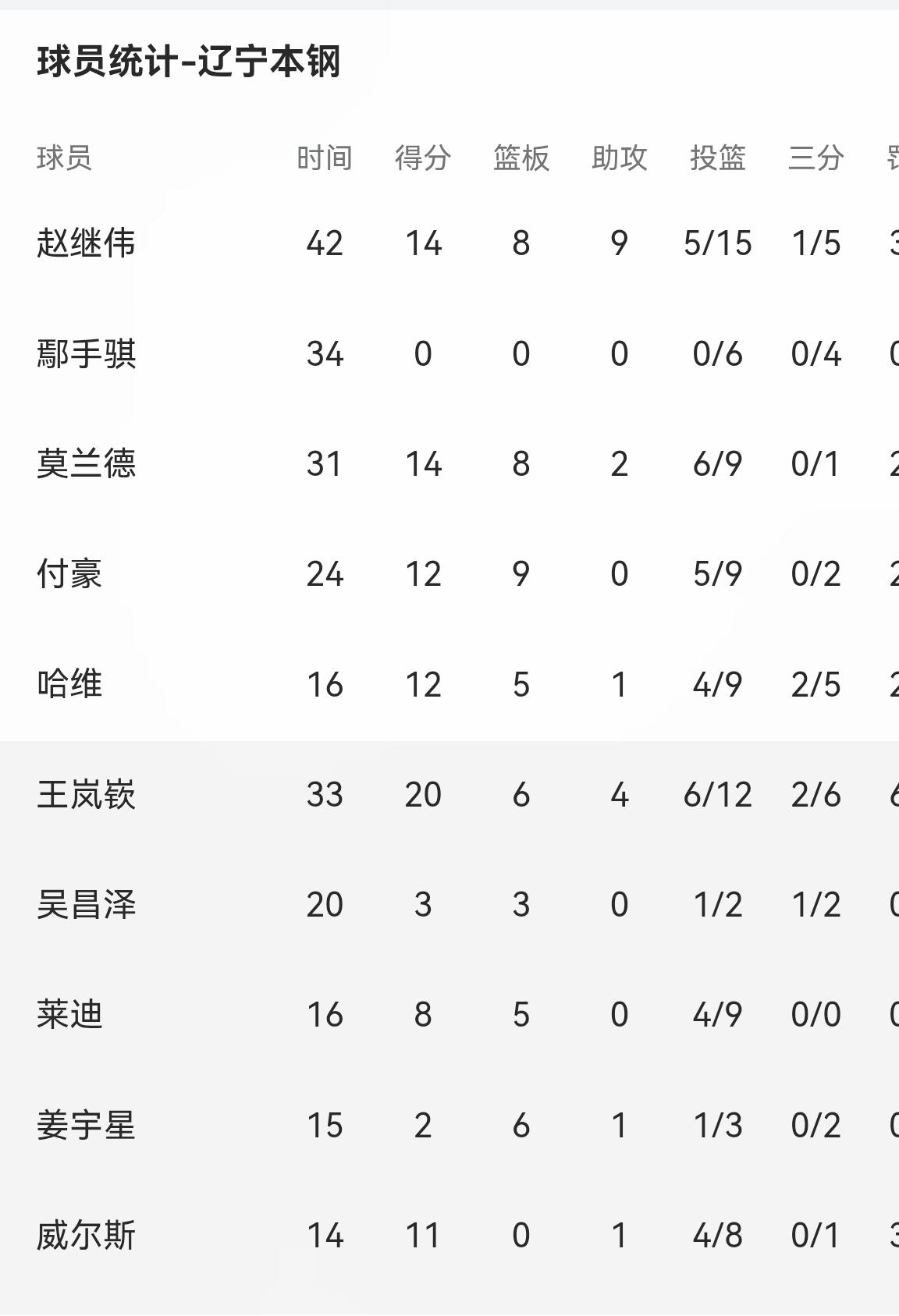 青岛国信辽宁本钢的双加时大戏太惊悚了——在比赛常规时间战成77平后,双方又在第一个加时战成88平。在第二个加时最后的关键时刻,辽宁队外援莱迪罚篮不中,辽宁队最终以96:98在客场2分惜败。赛后有辽篮球迷指责赵继伟,也有说是莫兰德,比赛如此艰苦,胜负皆正常,无须苛责。