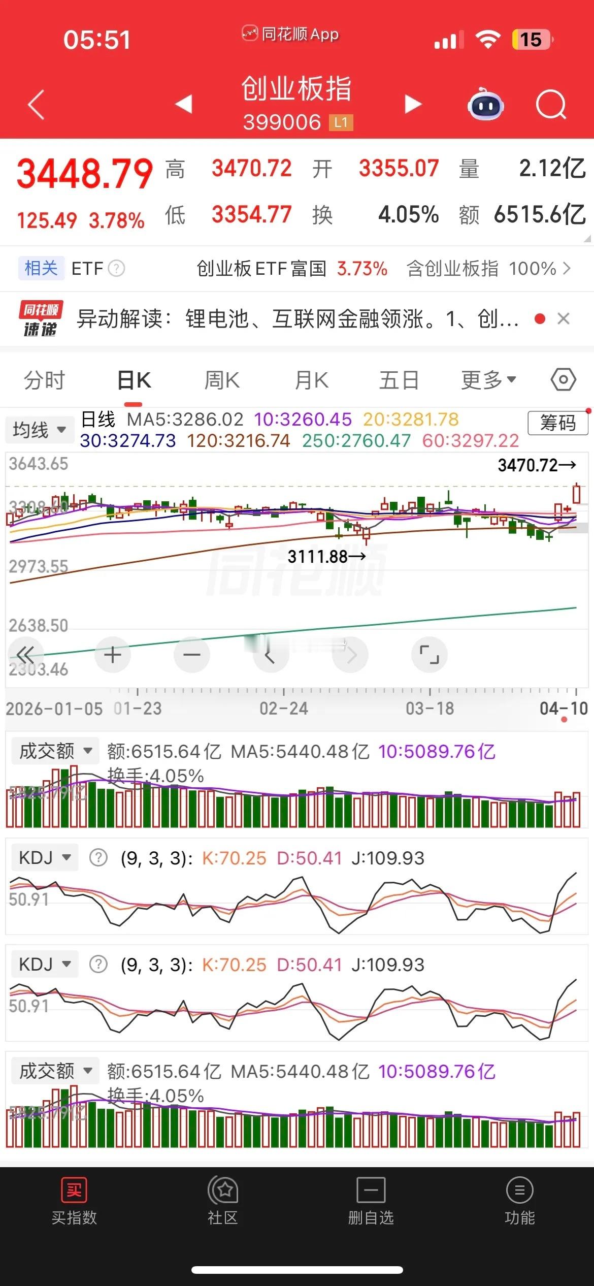 昨天市场放量普涨,沪指4000点得而复失,主要受制于30日均线压制,下周看能否放量突破站稳30日均线,是弱转强的关键,而创业板大涨近4%,创下4年多新高,主要是三大权重股宁王、中际、新易的百点贡献,下周看冲高震荡回落概率比较大,而昨天两市较上个交易日放量1800多亿,目前总成交维持在2.3万亿以上,后续看能否持续放量很重要,不然市场会延续前期震荡整理格局。板块上昨天锂电板块全线爆发,算力硬件反复活跃,cpo板块再创新高,存储芯片同样延续强势,金融科技异动拉升,目前看随着外围风险偏好上升,算力硬件及前期超跌的成长赛道依旧是资金的首选。