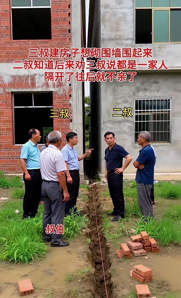 三叔盖新房,非要在院子里砌一堵围墙,把自家和二叔家彻底隔开。