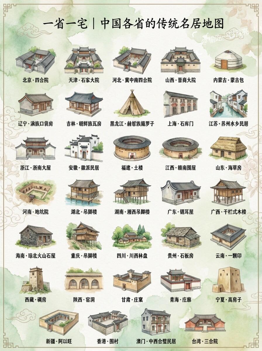 中国地大物博,每个省都有自己代表的特色,包括美食、建筑、风俗等。