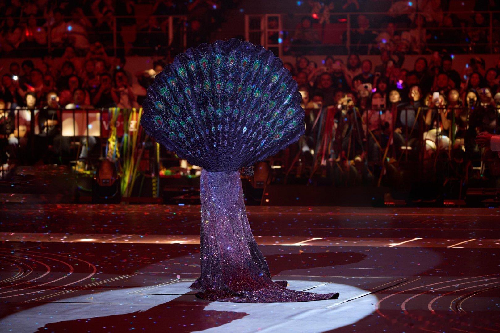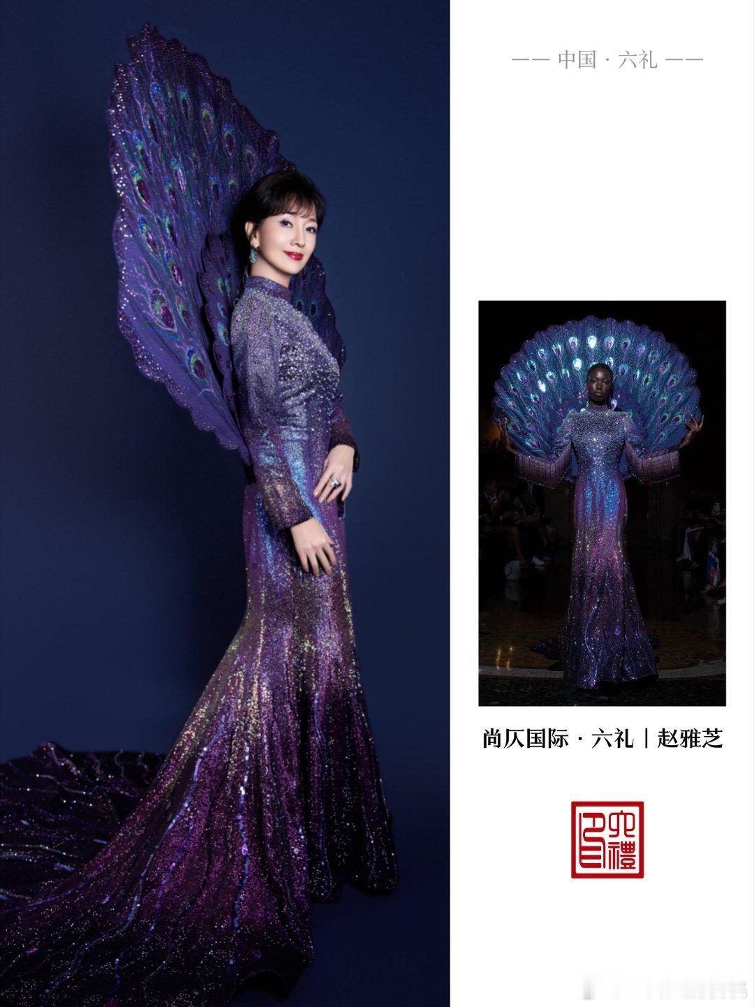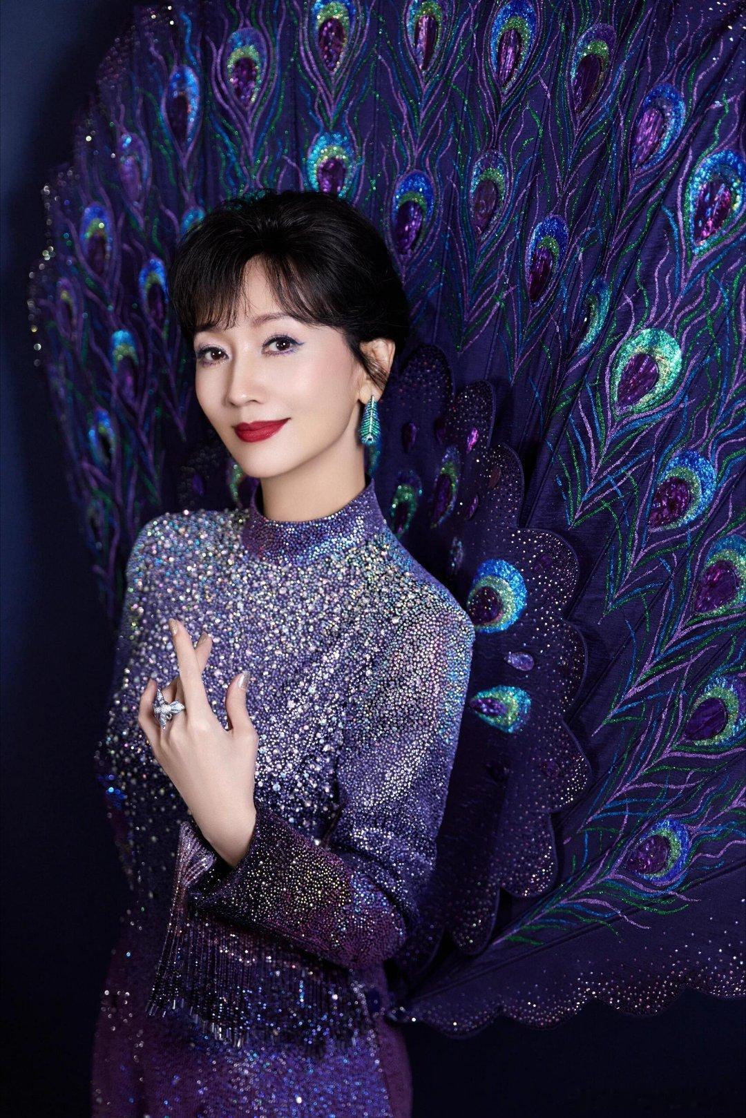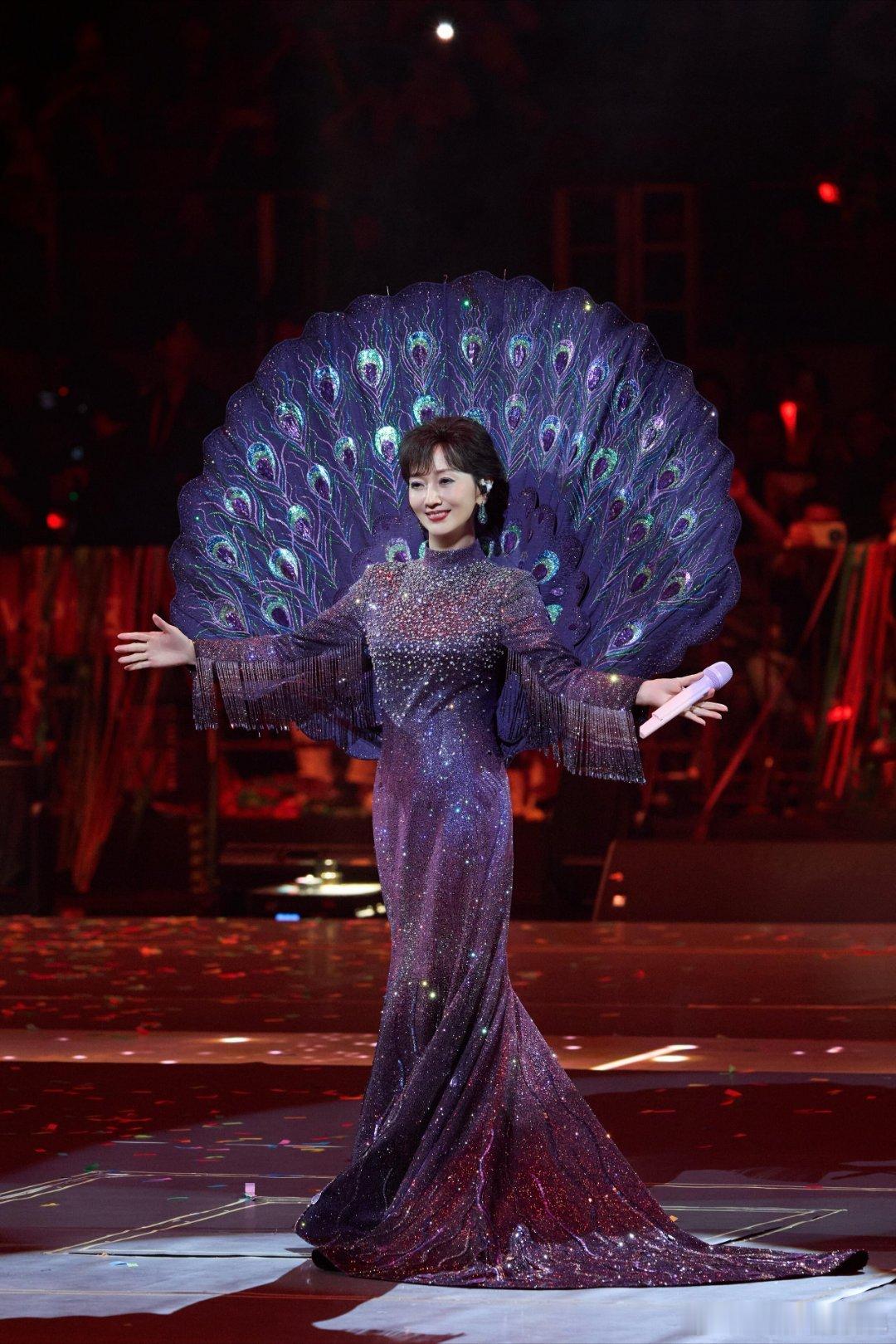 赵雅芝回忆舞台身穿六礼高定孔雀裙蓝紫渐变闪片+巨型孔雀扇,真孔雀女王!🦚