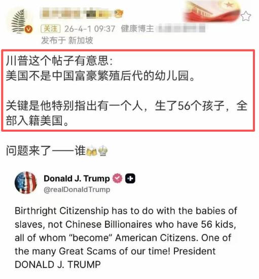 这番言论一出,瞬间引爆舆论场,也让外界把目光聚焦到美国出生公民权的制度漏洞与部分富豪跨国生育的灰色操作上。