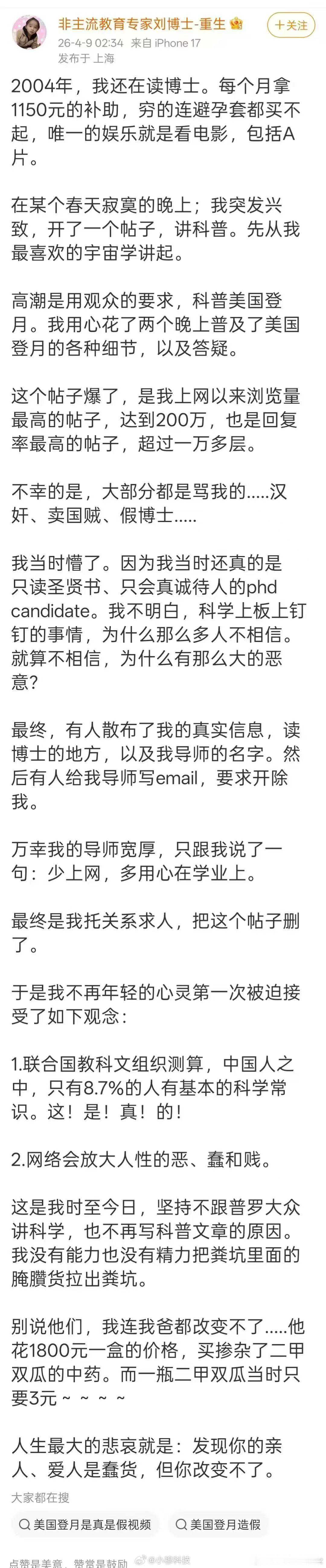 看了这种反智的评论,真的想喷他