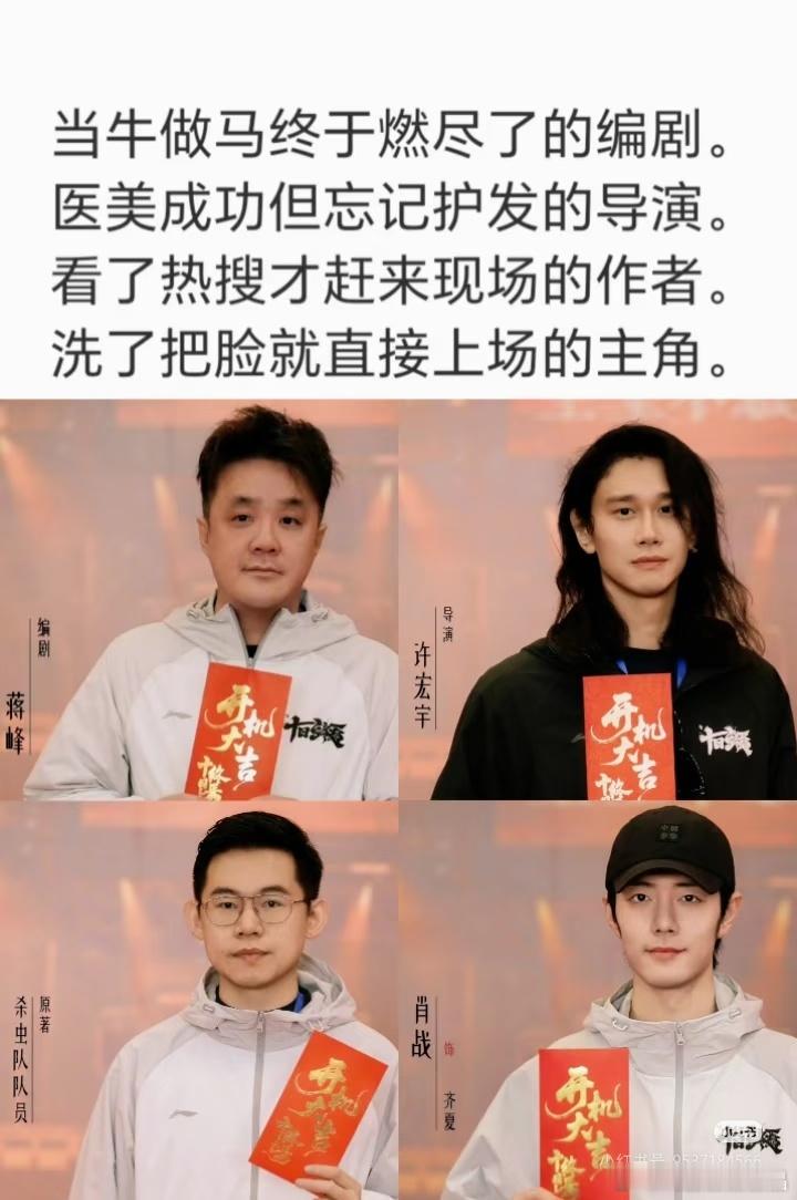 十日终焉导演许宏宇编剧蒋峰看到编剧的黑眼圈和随便抓了一下的头发,网友觉得剧本稳了。导演是不是最近做脸了,感觉回春了好多。